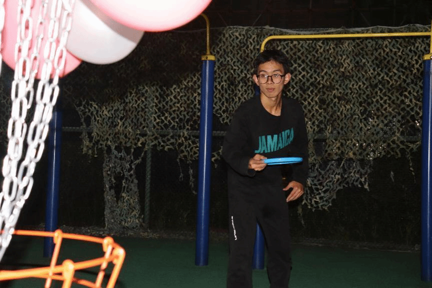 与歌唱一起进行的是户外运动协会开展的户外趣味运动,其中包括无敌风火轮、飞盘九宫格、飞盘高尔夫等。在无敌风火轮活动中六位同学团结协作,完成了指定的目标;在飞盘九宫格活动中,同学们在一定距离外投掷飞盘,他们相信自己一定能击中目标;在飞盘高尔夫活动中,六位同学在指定位置外依次投掷自己手中的飞盘,将飞盘投入网袋中,每一个人手上的飞盘都是获胜的希望。在这一系列趣味运动中,同学们体会了团队协作的重要性,每位同学都在为团队的胜利积极参与游戏,因为在团体中每个人都是密不可分的。同学们的欢闹声充斥着燥热的夏夜,游戏也在他们一声声欢呼中顺利完成。