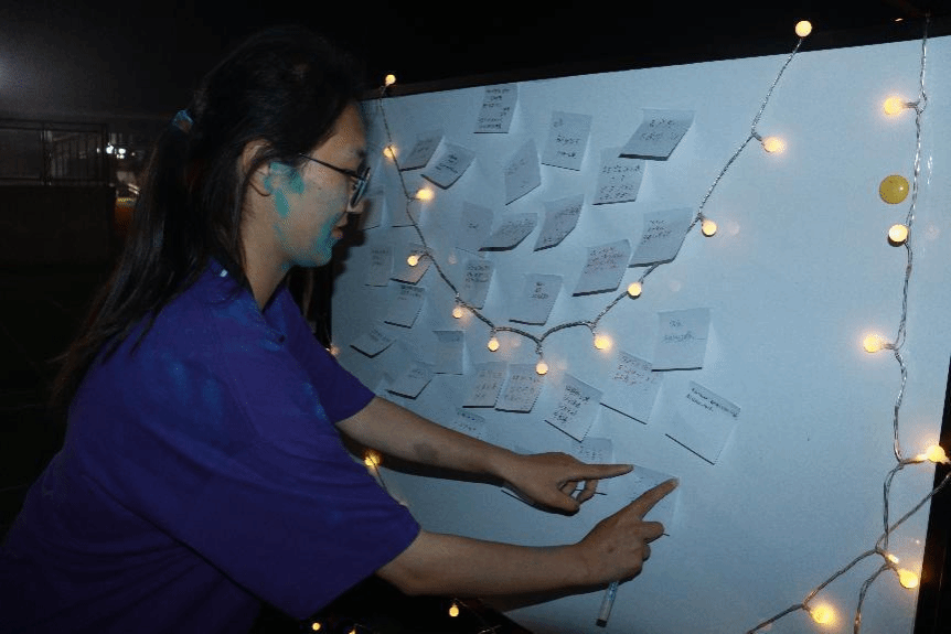 活动接近尾声,同学们围坐在一起,在便利贴上写下自己最真实的感受、最感动的瞬间、最青春的愿望、最想忘记的烦恼。一张张小小的便利贴承载了同学们的重要心愿与重大意义,也记录下同学们青春美好瞬间。