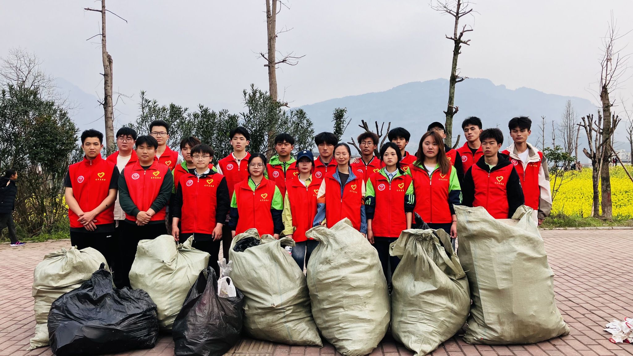 点 评:志愿者们身前的一袋袋成果,身后的油菜花给春天增添了勃勃生机,爱护这片美丽的土地是我们移通er的职责。