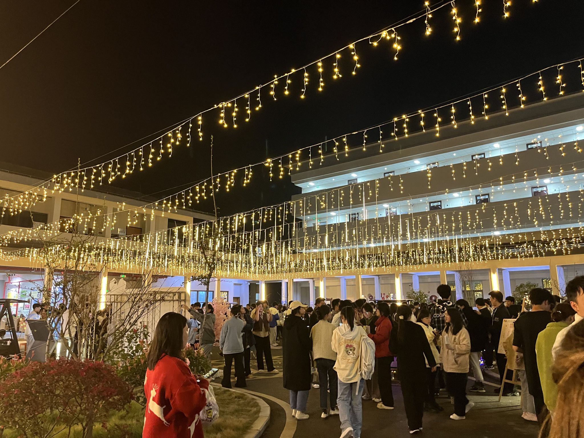 点 评:人群熙攘,笙歌鼎沸,在此欢聚你我的心。暖暖的灯光洒下满园,展现出参与活动时暖洋洋的心情。