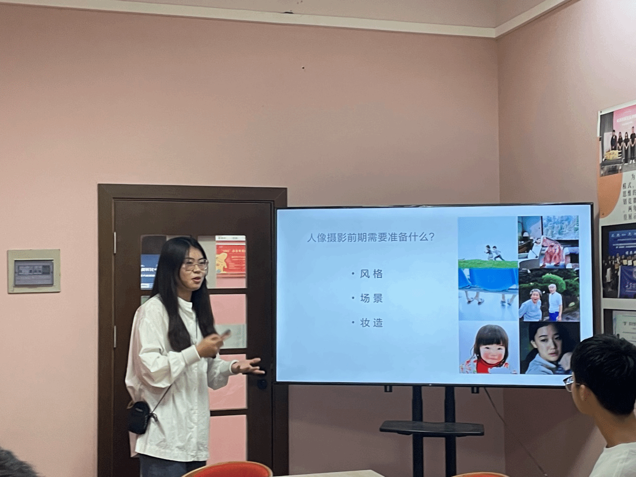 第二位同学向同学们分享的是人像摄影相关,包括在摄影的前期后期所需要做什么,人物的妆造氛围如何搭配。如何从各种不同的角度捕捉模特的魅力,用不同的构图,场景去诠释摄影师自己的情感。