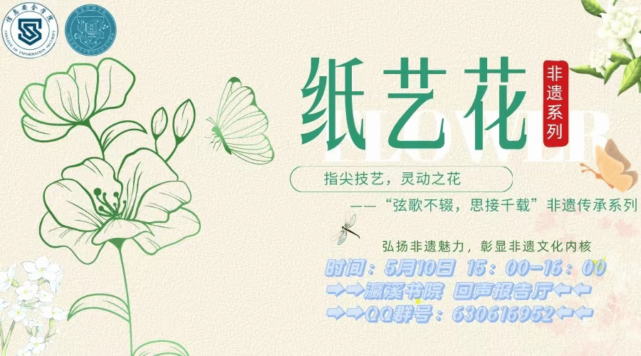非物质文化遗产是中华优秀传统文化的重要组成部分,是中华各族人民宝贵的精神财富。为弘扬非遗魅力,彰显非遗文化内核,信息安全学院学学习部特此举办“弦歌不辍,思接千载”非遗传承系列活动,包括纸艺花、脸谱、綦江版画的制作以及剪纸等,旨在增加同学们对非遗的认识与了解,坚定传承传统文化的信念,提高自身人文艺术修养。