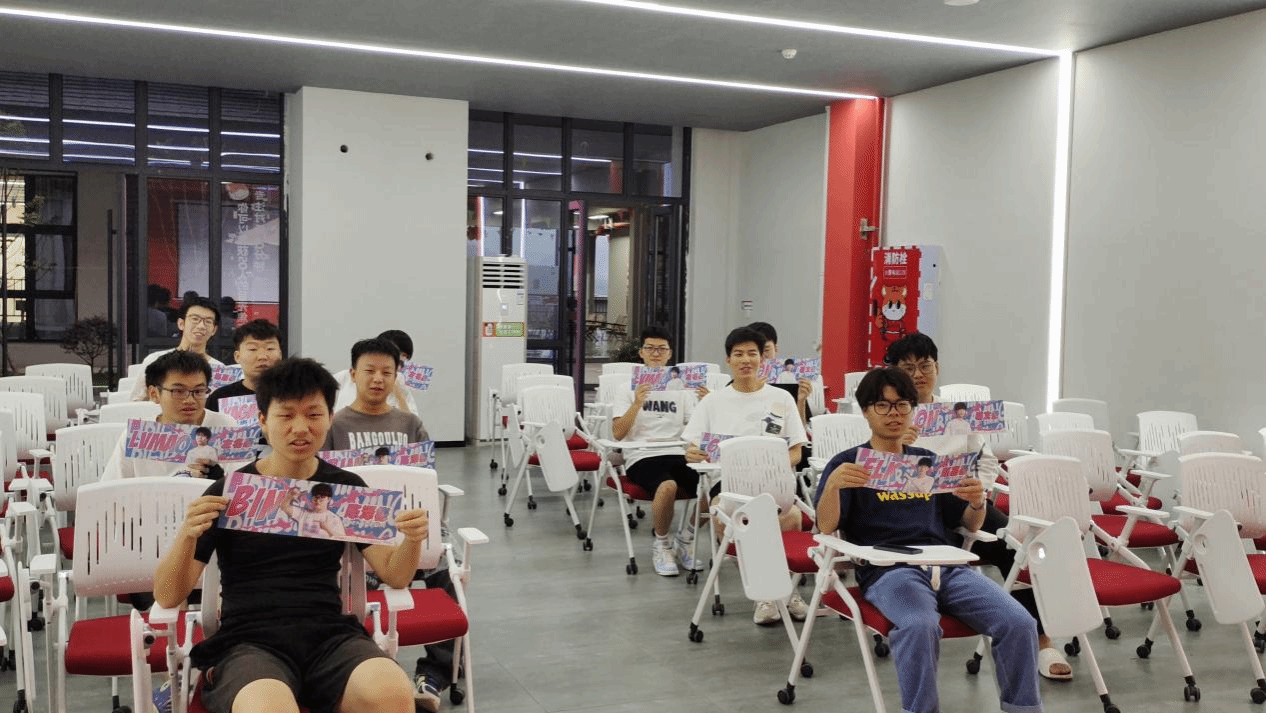 比赛开始前,观赛的同学们怀着激动的心情早早来到玉棠书院Talk King演讲中心,在GFD电竞社工作人员的指引下,在门口领取了自己喜欢选手的手幅。19:00比赛准时开始,在BP开始前,同学们大声呐喊“我们是重庆移通学院綦江校区GFD电竞社,我们为BLG加油!”。他们的呐喊充满了力量,这份力量跨越距离,化作信念,为在大洋彼岸的BLG加油!