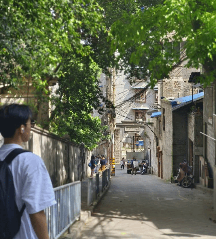 远离城市的喧嚣,周边的小镇也有自己独特的风光。茂密的树木挡住刺眼的骄阳,碧绿的树叶在微风吹拂下翻滚出一片片绿浪,地面上明暗交错的光影也构成了一幅独特的画卷 。略显陈旧的楼道亦是避暑的好去处,走进去就仿佛进入另一个清凉的世界,淡淡的潮湿气味弥漫在鼻尖。比起城市人们的行色匆匆,小镇的人们好像有一种独特的惬意从容。他们或背着行囊漫步,或牵着伴侣闲逛。品小镇悠然,感烟火人间。