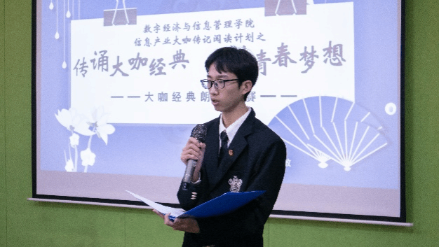 长风破浪会有时,直挂云帆济沧海。山川是不卷收的文章,日月为你掌灯伴读。且视他人之疑目如盏盏鬼火,大胆去走你的夜路。至此,数字经济与信息管理学院信息产业大咖传记阅读计划之“传诵大咖经典,声动青春梦想”大咖经典朗诵大赛圆满结束,希望同学们在未知的未来,可以在琅琅的读书声中心无旁骛,坚定自我,铭记信念,读一本叫人生的书,看一幅叫世界的画。
