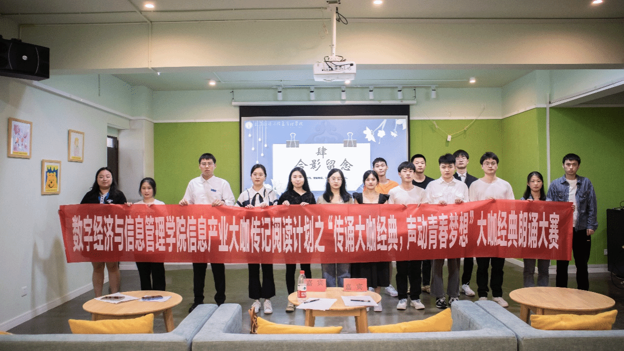 为活跃校园大咖阅读文化氛围,给善于阅读朗诵、创新思考的同学提供一个展示自我才能与个性风采的平台,提升学生语言组织与情感表达能力,铸造自信自我,数字经济与信息管理学院于2023年5月19日14:00在双栀多功能影音室成功举办信息产业大咖传记阅读计划之“传诵大咖经典,声动青春梦想”大咖经典朗诵大赛,本次大赛有幸邀请到数字经济与信息管理学院社团活动版块指导老师刘琳老师、吴丽玉老师作为评委嘉宾出席。