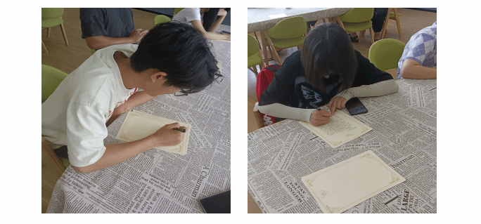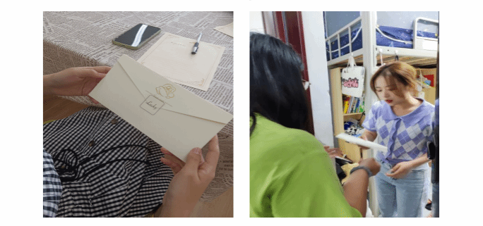 本次活动以“书信”的形式,引导同学们在坦诚的情绪,平和的状态下,与自己交流,与他人交流,用笔尖流露心底的深情,温柔的情怀。活动开始前半个小时工作人员将信封和信纸等活动物资分放于各个位置上,活动一切准备就绪,等待参与者们的到来。5月20日16:00,参与此次活动的同学陆续到达活动地点,等到参与同学都到达活动场地并就坐后活动组织者对本次活动的目的和意义进行单的讲解后,每位参与者开始提笔书写内心深处的感情。