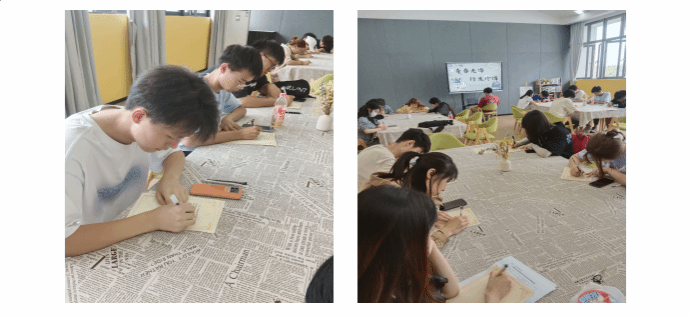 文字无情,人有情,现场的参与者拿起面前的笔并没有急于写下文字,而是低头看着面前的信纸,似在思考着这封信如何写,对方才会知道写信者的想要表达的感情,又好像在思考这封信怎么才能将自己全部的感情都表露出来……