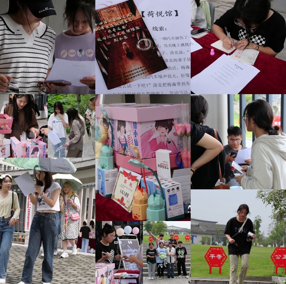 为使同学们的课余生活更加丰富,激发同学们动手、动脑的能力,培养同学们的探索精神,结合当代大学生的特点以及时代潮流,外国语学院外联部与智能工程学院外联部在2023年5月19日14:30联合举办了“惊奇之卷”校园沉浸式推理剧本杀活动,活动以6人组成一队,以天渠、荷悦、竹逸、梅若、双栀、松格六个不同的书院为线索依托,围绕着挑战、团结、探索等精神,通过设置各种创新的挑战形式,引导同学们“认识自我,挑战自我”,提升同学们推理与探险的能力及团结协作能力。