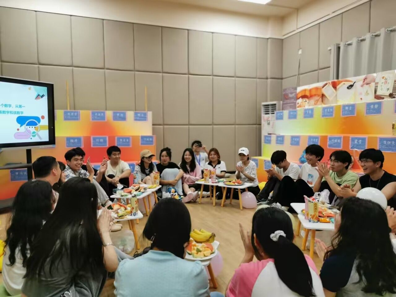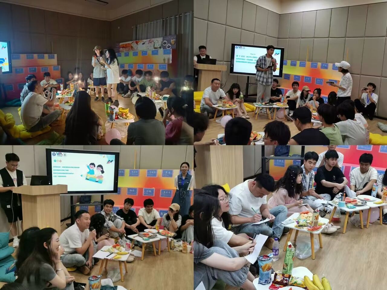 在全部成员到达活动现场并就坐以后,主持人正式宣布开始此次活动。介绍完本次活动嘉宾、目的与意义后就到了起始的游戏环节。现场同学一起进行了逢X必过、你画我猜、谁是卧底娱乐游戏。原本些许紧张的氛围在不经意间随着欢声笑语消散于娱乐活动中,现场氛围轻松、愉悦。