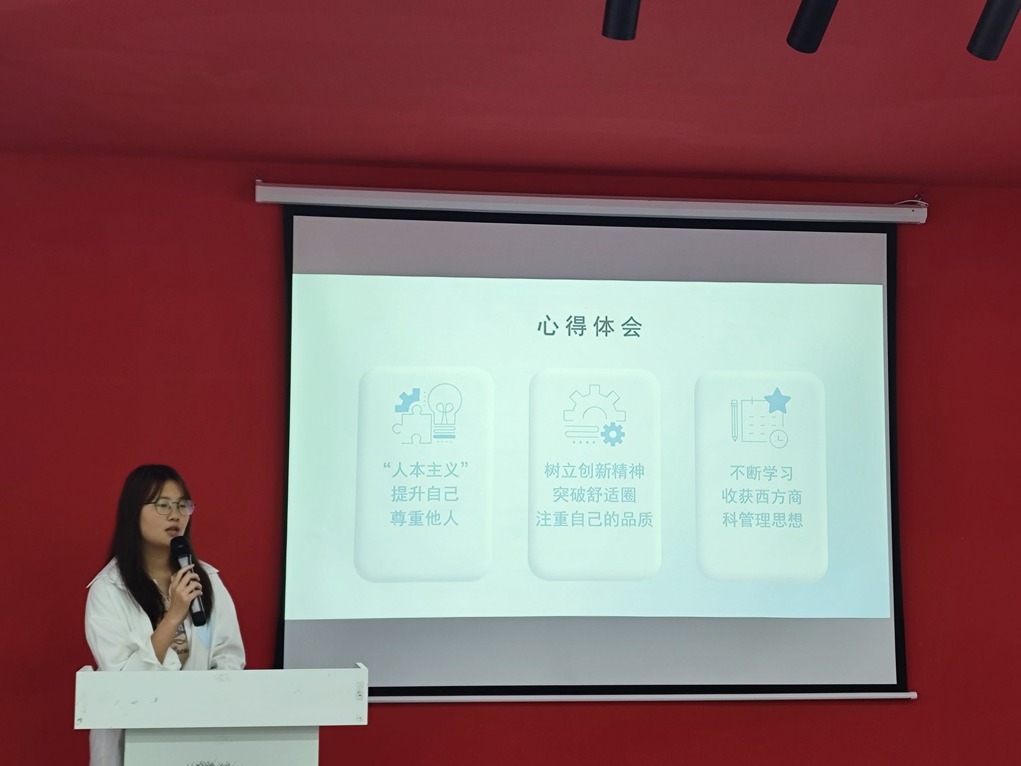 首先上台的是来自互联网金融3班的田雅晴同学,她分享的大咖书籍是《松下幸之助全传》。田同学分享道这是一本富有智慧的书,它不仅给我们带来了思想上的启迪,令我受益匪浅,更重要的是它引导我们去认识自己、改变自己、超越自己。“上进的欲望就是成功的力量。”拥有上进的欲望,你就能积极进取,充满力量,不怕挫折,排除艰难,最终到达成功的彼岸。
