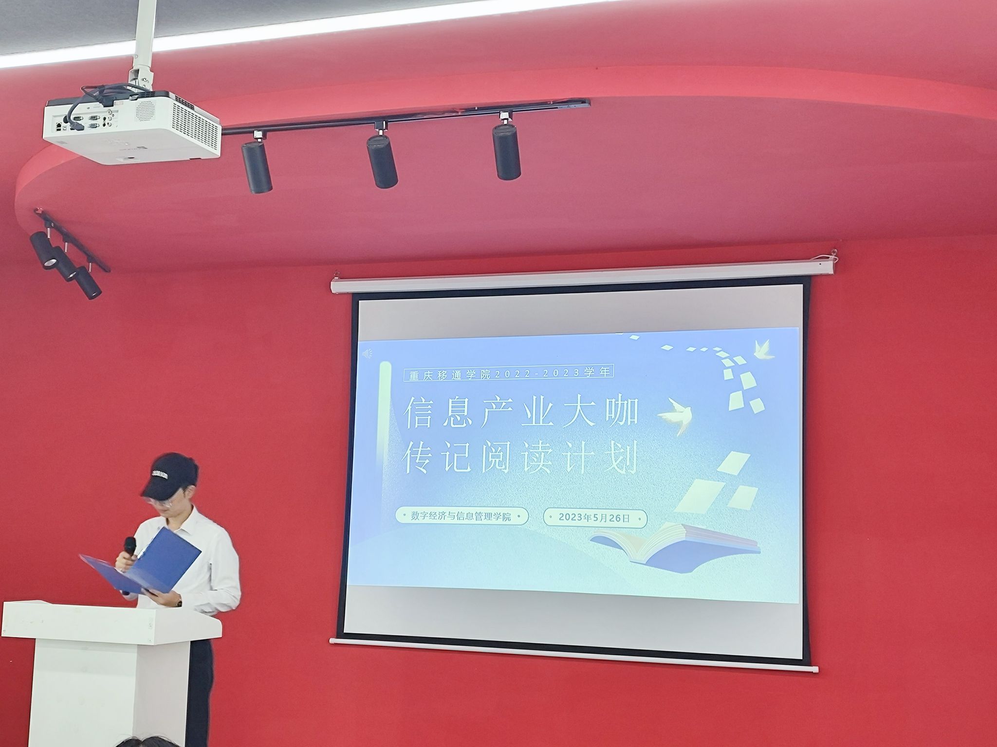 在作品征集期间,共推选出来9位同学进入本次复赛,每位同学都对大咖阅读有独到的见解,不仅从大咖阅读活动中了解了各个行业大佬,也从中学到了对自身有益的知识和经验,受益匪浅。道阻且长,行则将至;行而不辍,未来可期。5月26日下午1点,伴随着主持人的精彩开场,本次线下答辩活动正式拉开序幕。