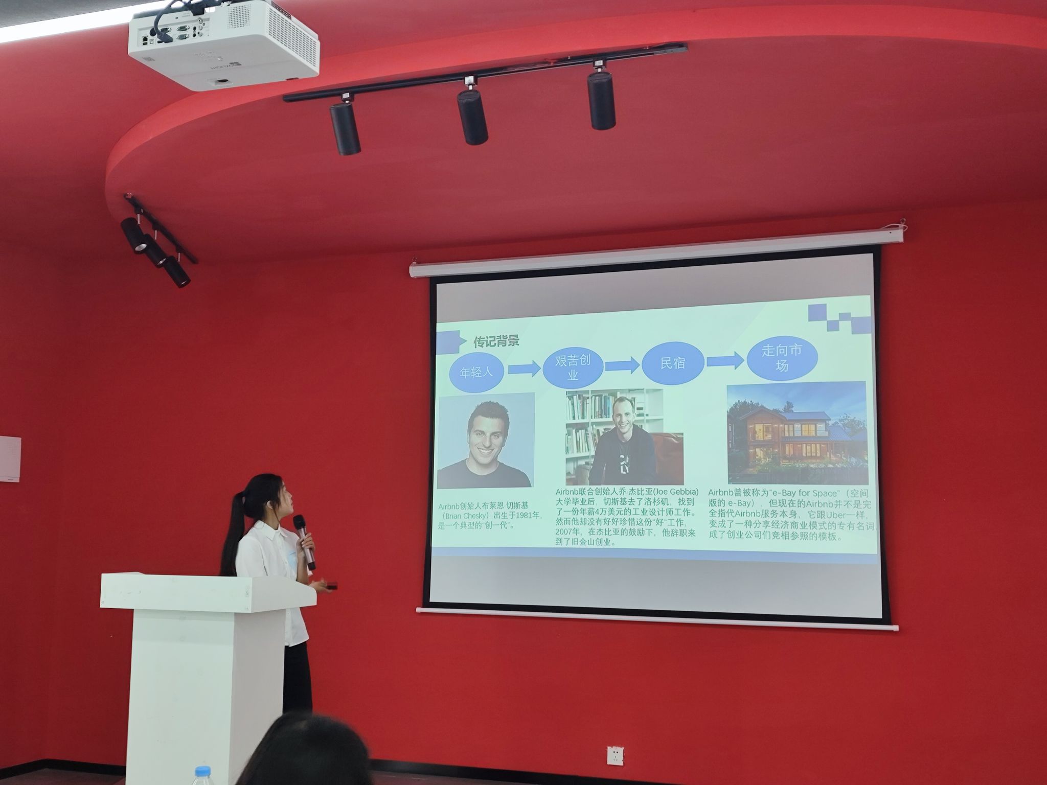 艺术的大道上荆棘丛生,这也是件好事,常人都望而却步,只有意志坚强的人例外。接下来由管理科学与工程类5班的王珊同学带来《爱彼迎传》的分享,从一个艺术家到商业人的转变,创始人之一的切斯基一直在不断的自我提升,他拥有的资源也越发丰富,保持热情、坚持、向他人虚心请教、不断的克服苦难去创新、诚实守信,远见卓识和雄心壮志这些优秀的品质在他身上都能学到。