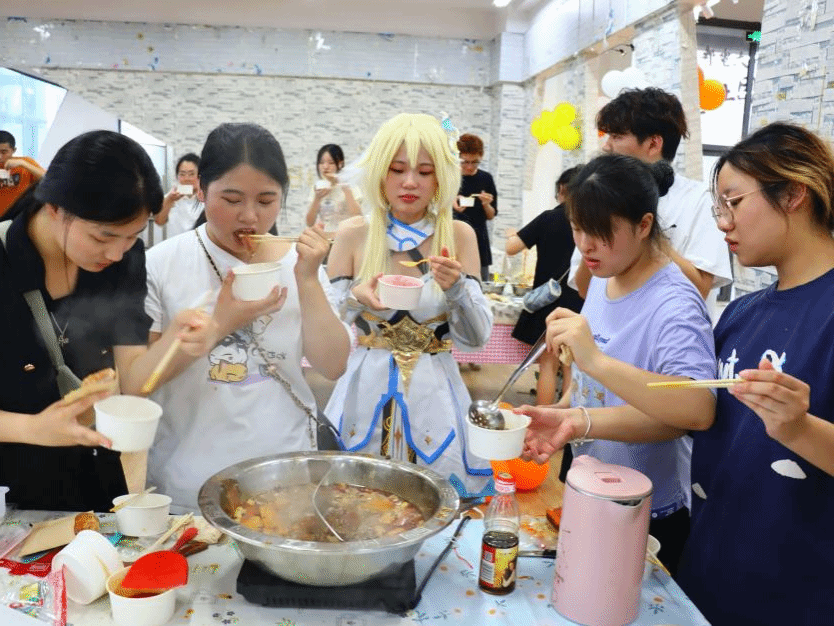本次活动以家·味道为主题,打造浓厚川渝色彩的家乡特色美食摊位,开展美食大比拼、舌尖大冒险等趣味的比拼小游戏,将美食与游戏巧妙结合增加活动体验感,深刻感受重庆人浪漫热情的生活方式与生活态度。麻辣鲜香的重庆火锅探寻重庆人悠远深厚的味觉记忆;软糯香甜的砵仔糕引领大家梦回童年味道;甜润香滑的红豆冰粉淌过时间轴线寻觅家的味道……家乡美食的力量不仅局限于味蕾的满足,更在于心灵的抚慰。一食一味是高校学子对家乡的思念,更是落尘归地的美好愿景。