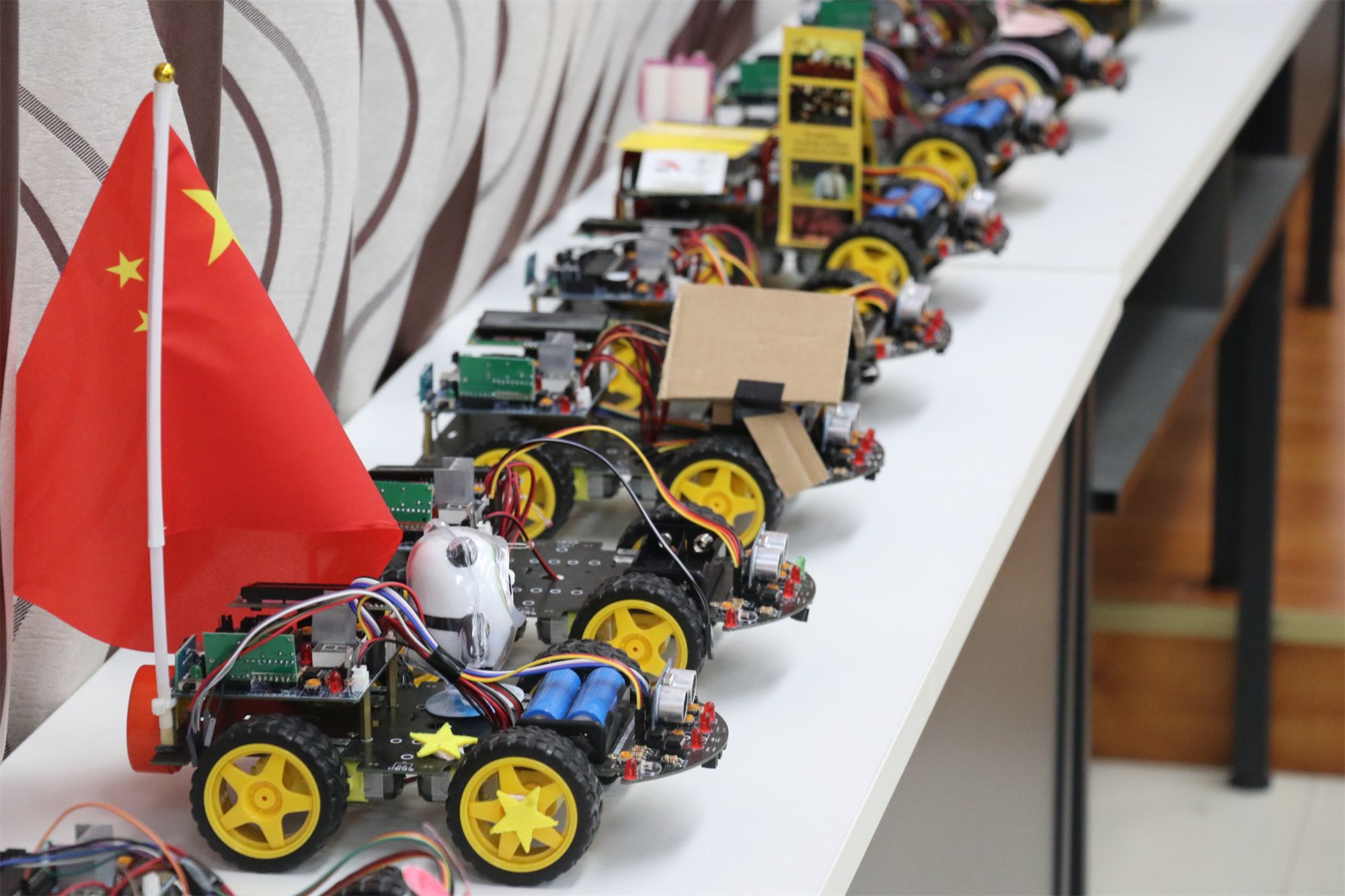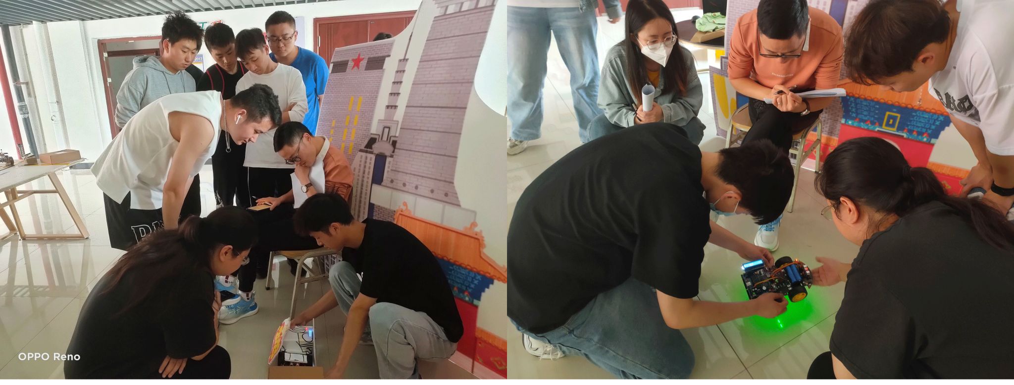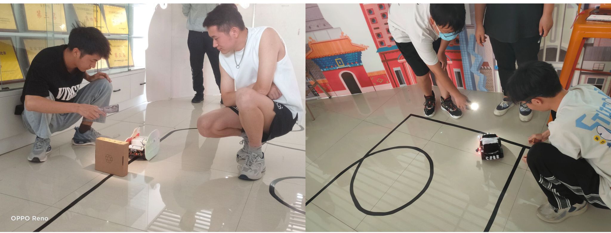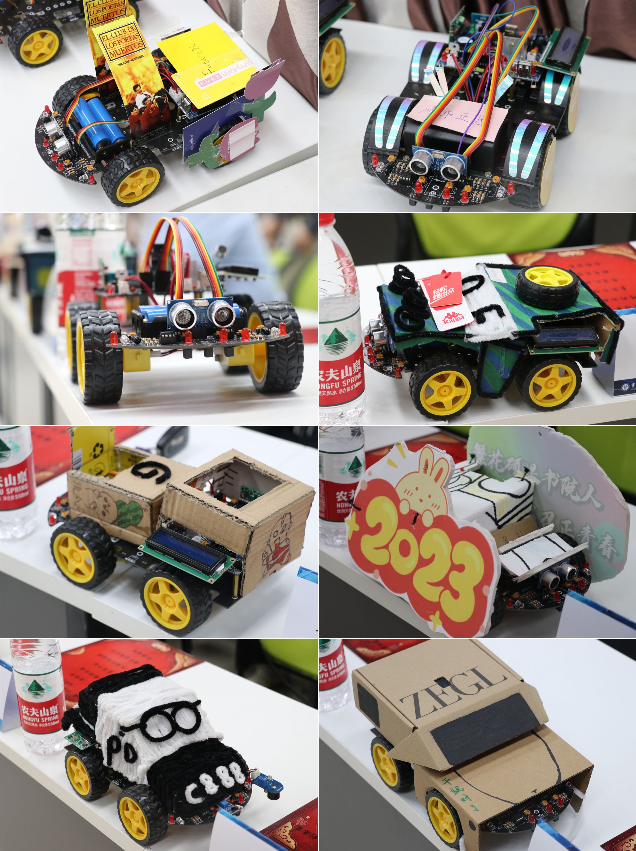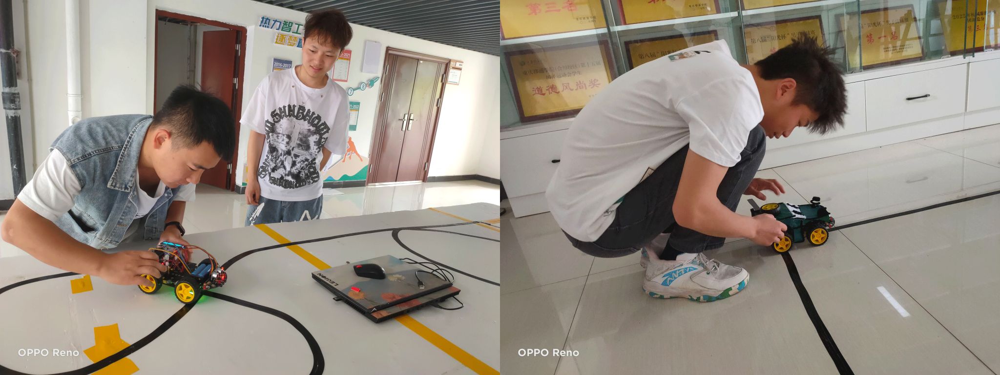 复赛阶段要求完成实物焊接与编程调试。前期由专业指导老师为学生讲解焊接基本原理与制作方法及注意事项,并提供焊接物料、工具及场地,期间多次强调操作过程中注意安全,小心使用焊接工具,保证人身安全。中期编程调试小车功能的完整性,测试循迹避障编程效果。5月12日,于梅若书院一楼进行了复赛评比,比赛现场根据演示顺序,要求在规定时间内完成小车循迹跑完包含直线、直角、环岛、S弯、十字五个元素的完整轨迹,同时实现避障功能,在以上指定功能以外,根据选手自己的能力去完成一些其它附加功能,比如小车寻光,红外遥控,声控前行,数码管显示等。经过一天的精彩角逐,最终评选出获奖名单。