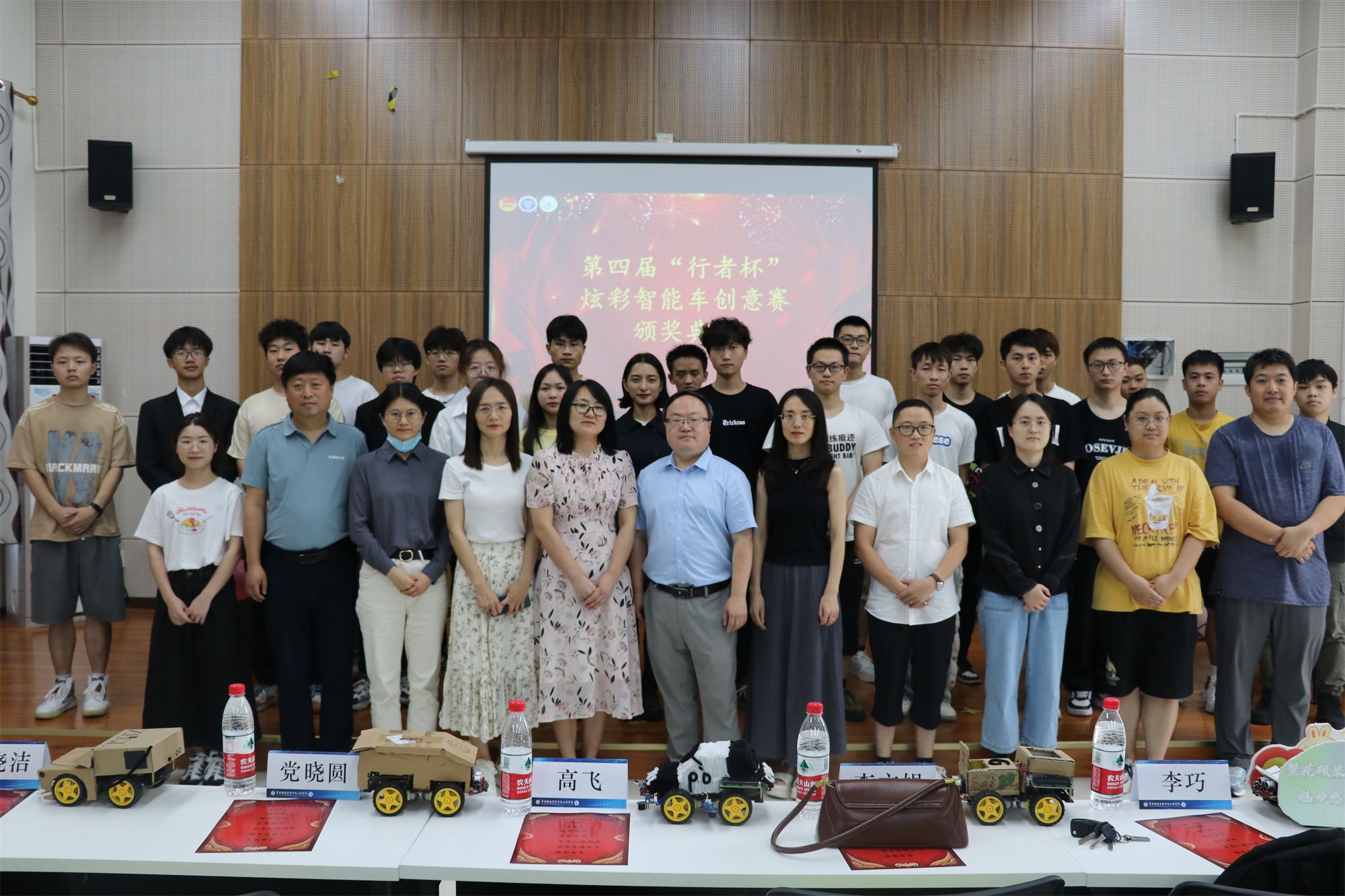 为培养智能时代新工程师,大力支持学科竞赛活动与完满教育相融合,依托创新平台、综合性实践基地等优势资源,加强广大学生的科技创新素质提升,激发学生专业学习兴趣,切实锻炼学生的工程实践能力。智能工程学院举办了重庆移通学院第六届创意•科技文化节之第四届“行者杯”炫彩智能车创意赛,并于6月15日下午两点举办了颁奖典礼,莅临本次颁奖的嘉宾分别为教务处处长高飞,通信与信息工程学院院长李文娟,智能工程学院院长党晓圆,智能工程学院副院长李巧,电气工程教研室主任晁晓洁,机械工程教研室主任牛亮,轨道交通教研室主任冯铁成,以及各参赛队伍的指导老师和团队代表。