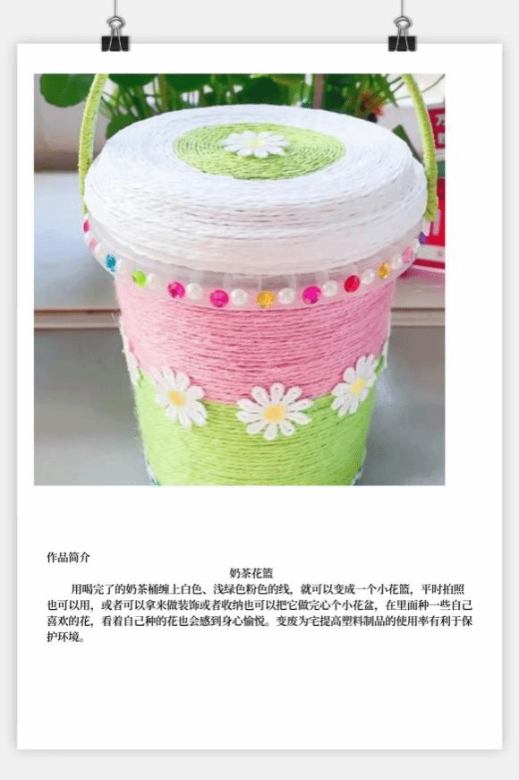 小小的奶茶桶,蕴含了大大的能量,经过同学的巧思妙想,让奶茶桶又活了起来变成“百变桶”。笔筒、花盆或是装饰品,每一重“身份”都能将其作用发挥到最大限度。