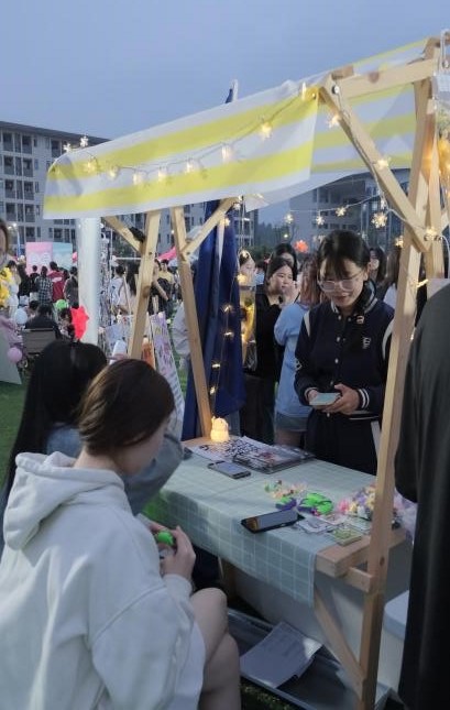 下午四点左右,社团成员带着提前准备好的物资来到活动场地开始布置摊位,热情地为感兴趣而驻足的“小萌新”们介绍电影协会。此外本次招新活动为了增强同学们互动的乐趣,使其更丰富有趣,在现场设置了三个有趣的小游戏,分别是:看图猜电影、太空平衡木和抽木条,并在招新点位上为同学们提供了如青蛙气球、减压玩具、夜光小摆件等有趣可爱的小奖品,希望能通过这些游戏互动为同学们带来愉快的电影协会初体验。
