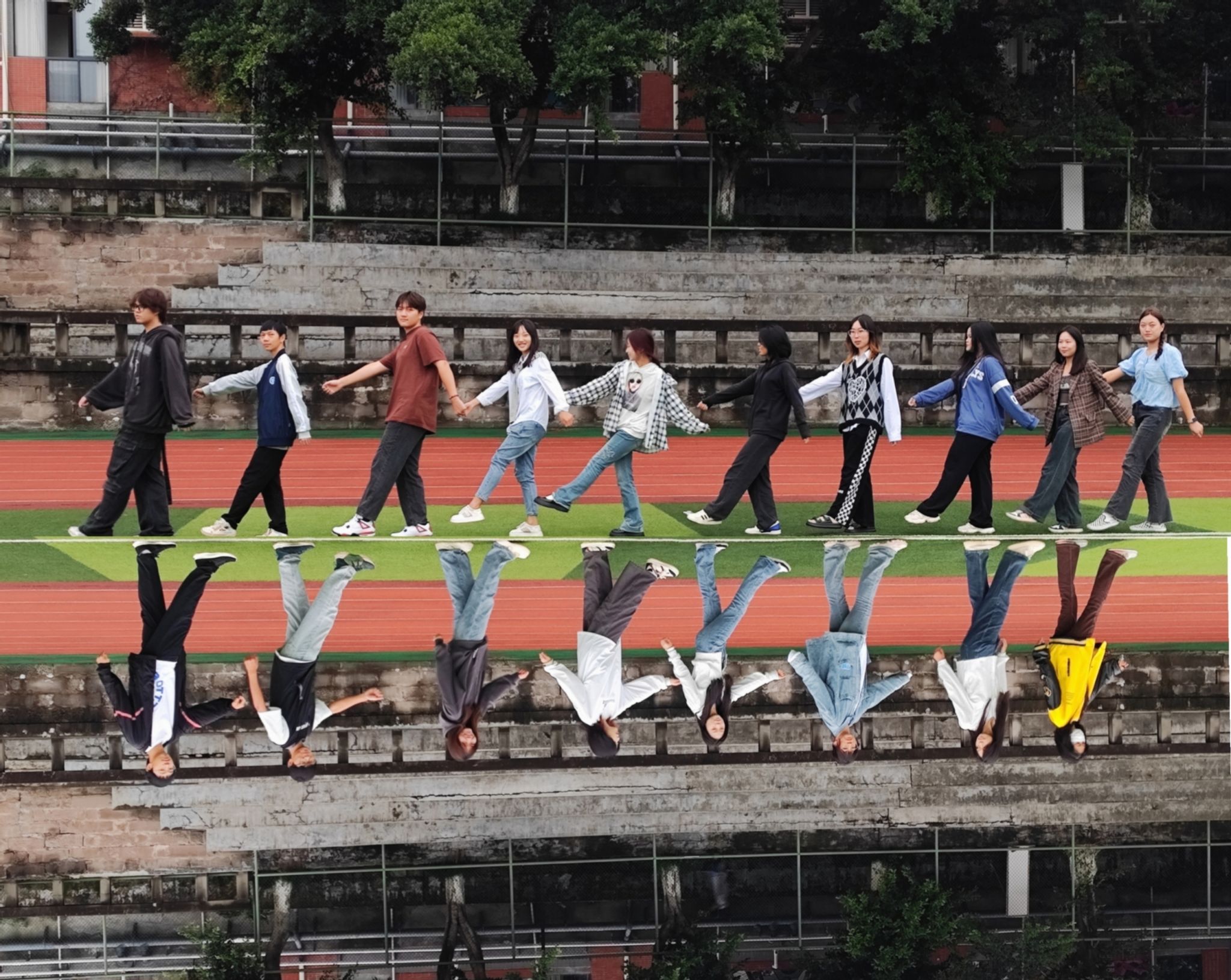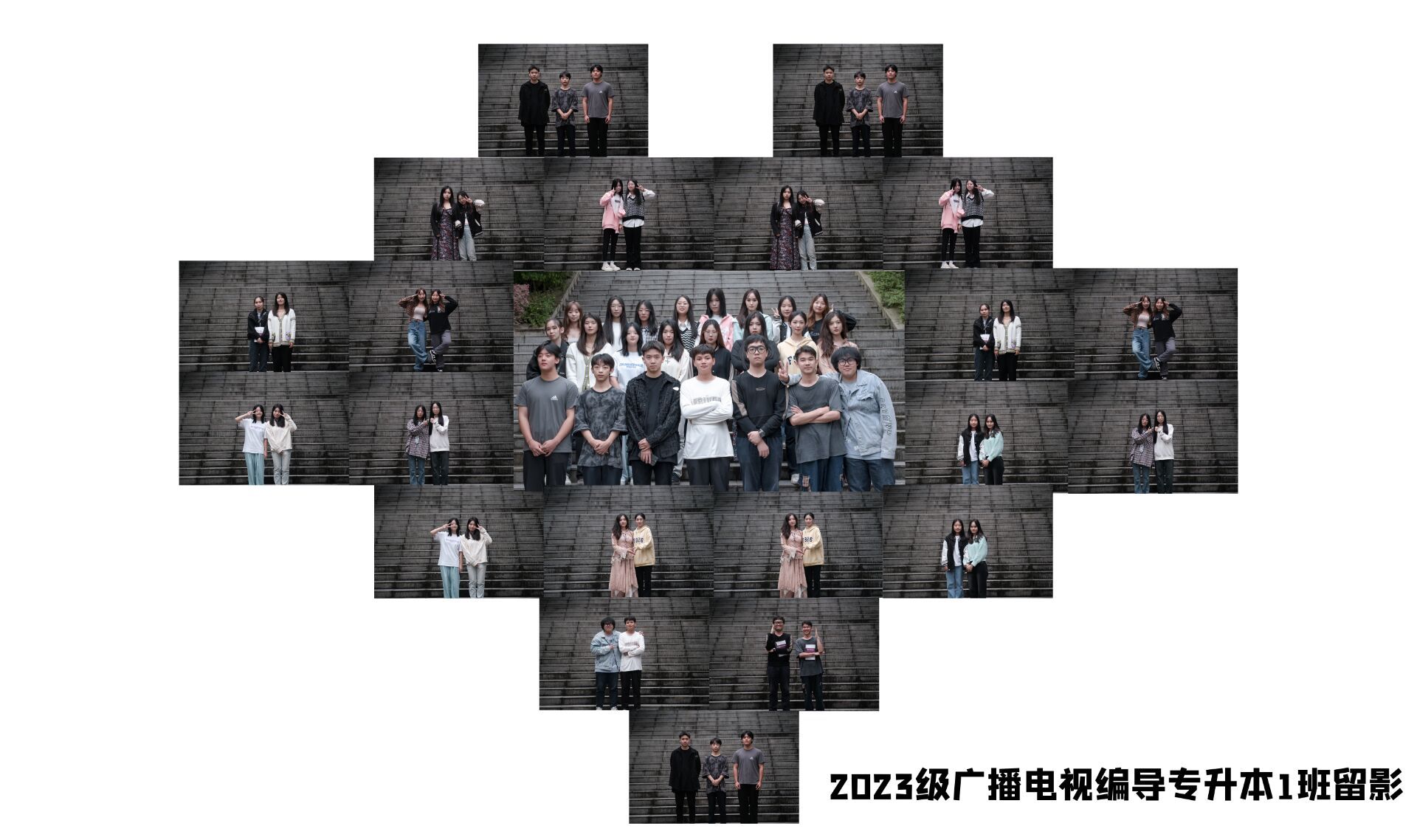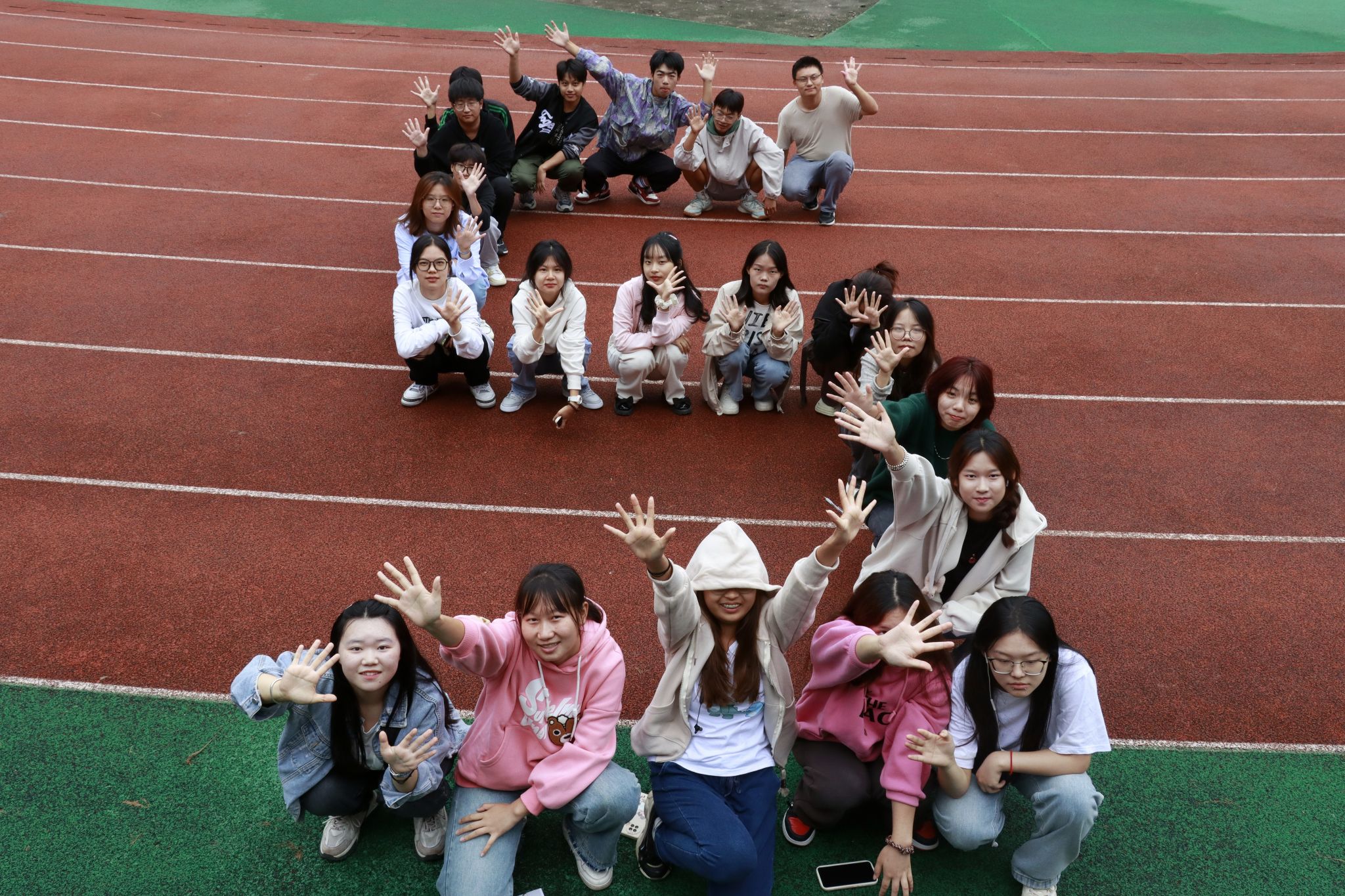 2023级数字媒体艺术7班的同学们,采用别致的组合手法,将拍摄照片以倒映方式呈现。2023级数字媒体艺术5班深度结合班级数字,在操场上以人形摆出了“5”的符号。2023级广播电视编导专升本1班同学们,以小我+大我的形式,构建起了一个充满爱与能量的班级合照。