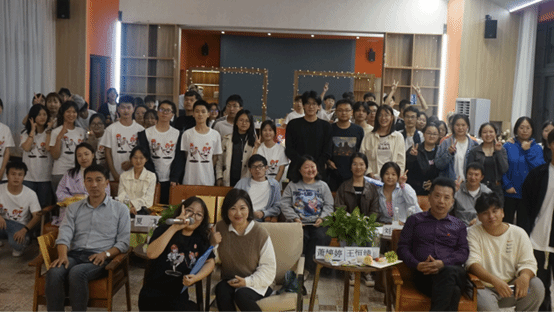 现场气氛热烈。主持人介绍了文学社的发展历程,为同学们展示了文学社历年举办活动所取得的成就及文学社自主设计的文创产品,以“我们”系列品牌活动、文学活动拼贴诗为例,分享了过去一年里做过18场活动、连续两年获得品牌及优秀社团的成绩,凸显了文学社作为品牌社团的文化成果。社团负责人龙雨代表社团发言,表达了社团全体成员对文学社未来发展的美好憧憬。