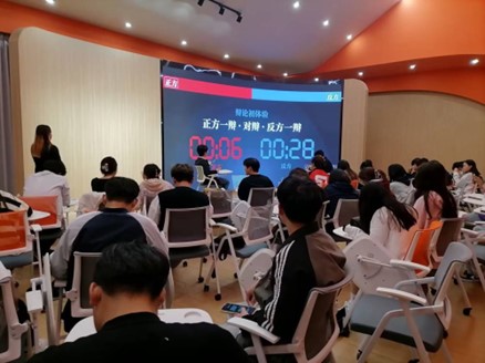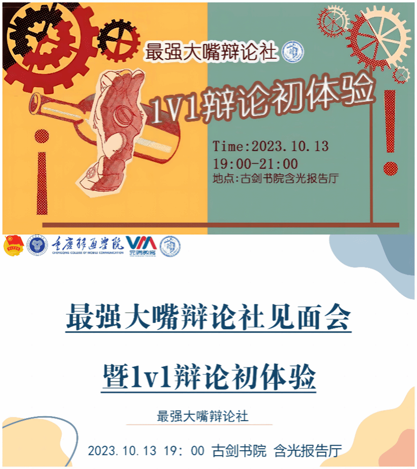 社团招新大幕伊始,辩论社积极踊跃宣传社团,社团成员活跃于各大平台上推广社团,介绍社团栏目。1v1活动前期最强大嘴辩论社充分调研社团成员意愿,从调研情况分析,可以看到新一期社员对于语言表达的浓厚兴趣,渴望站在舞台发光、渴望通过辩论的形式、传递自我价值,基于此情况,为了满足同学对于辩论的好奇,使其更贴近的了解辩论,辩论社于见面会开展了1v1辩论初体验活动。