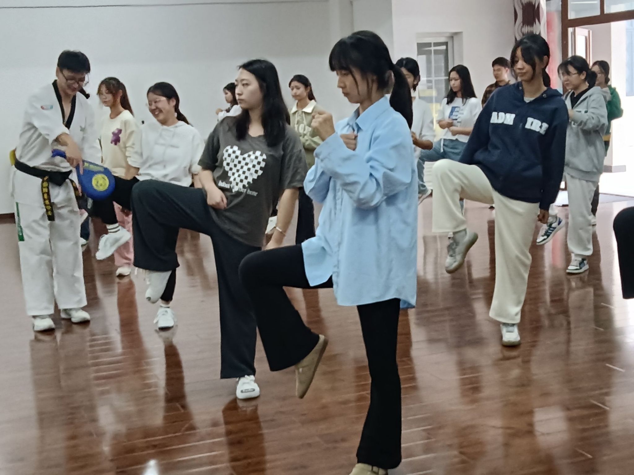 岁月的秋,既是轮回,也是新的开始。人生的秋既是成熟,也是另一个路口。告别九月的漫山遍野,迎接十月的云卷云舒!而女子课堂也踏秋而来,为了更好地展现社团文化,让校园活动与社团活动进行碰撞产生别样的风采。外国语学院学生会权益部于2023年10月18日下午三点,在荷悦排练厅成功举行“文以凭心,武以观德”女子课堂第二期之巾帼不让须眉武术体验活动。