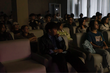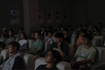 主持人唐宏婷热情地欢迎各位参与者的到来,并简单地向同学们介绍数学建模的内涵及意义。在为期两个小时的电影播放中,同学们聚精会神地观看电影,并在座位席上相互轻声地讨论电影内容,在场工作人员有条不紊维持现场秩序。