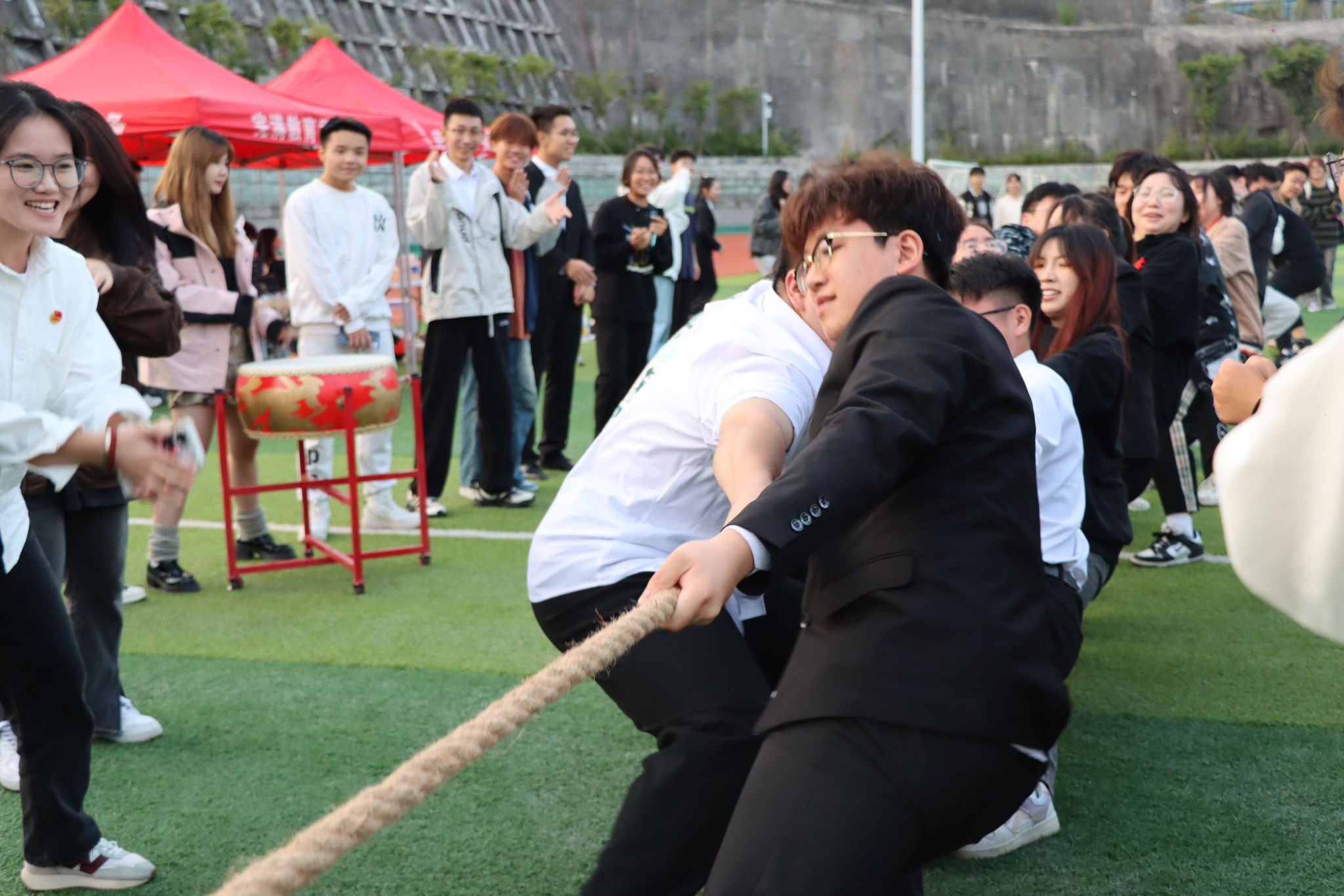 在欢声笑语中,我们来到了最终关卡--拔河,各组织快速集结队伍,早已摩拳擦掌、跃跃欲试。只见队员们统一压低重心,紧握麻绳,向后倾身,屏气凝神,随着裁判一声令下,拔河比赛正式开始。一次又一次的拖拽后移,一声又一声的呐喊助威,象征着胜利的红丝带不断左右晃动,激烈的对阵牵动着在场成员们的心,在此刻,必须倾尽全力,团队力量爆发,恭喜学生体育联合会赢得了拔河环节的最终胜利!