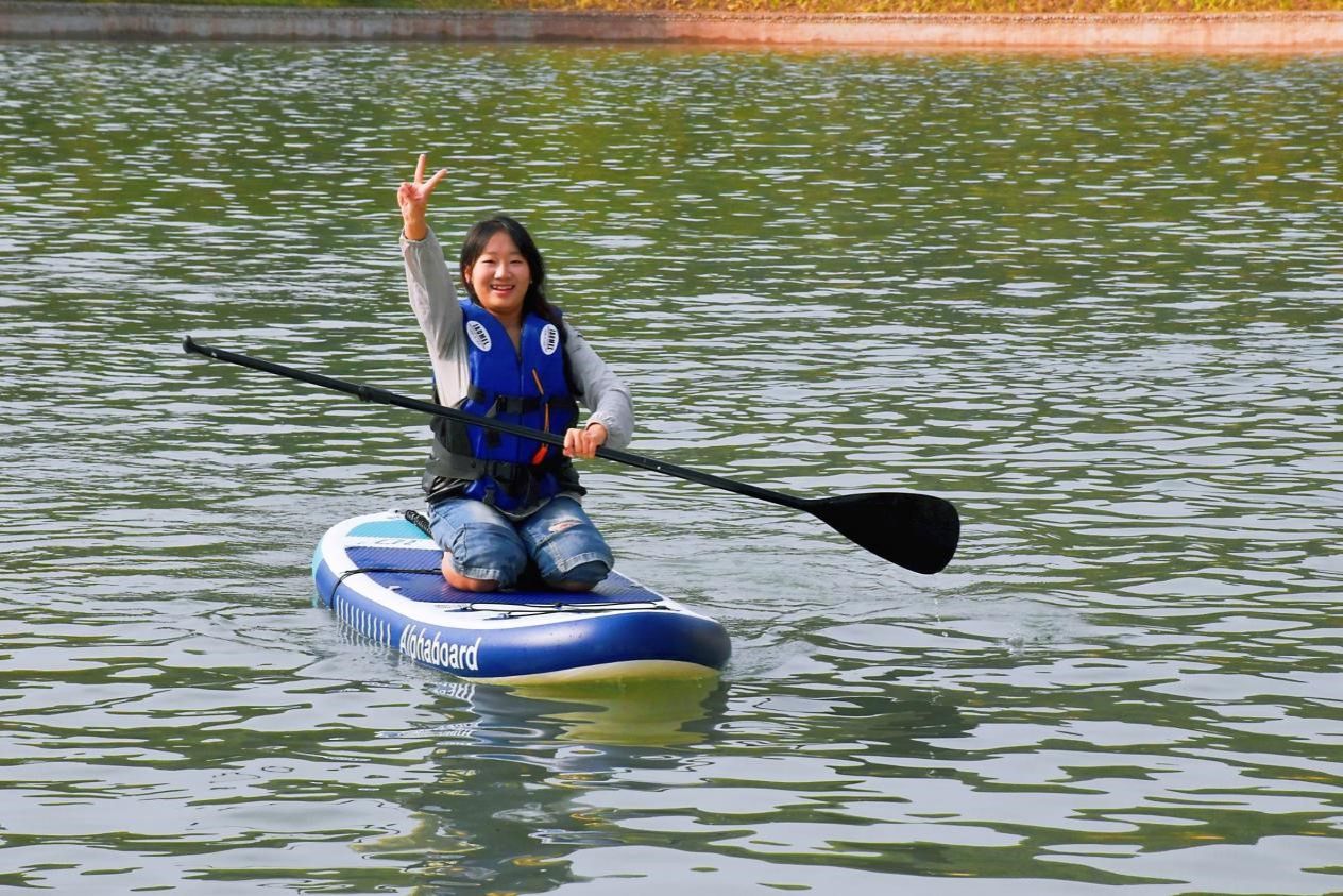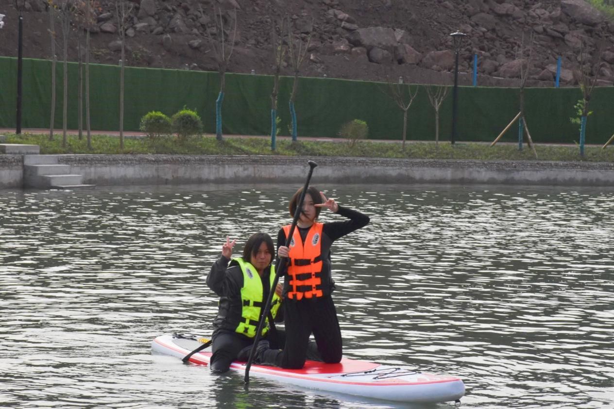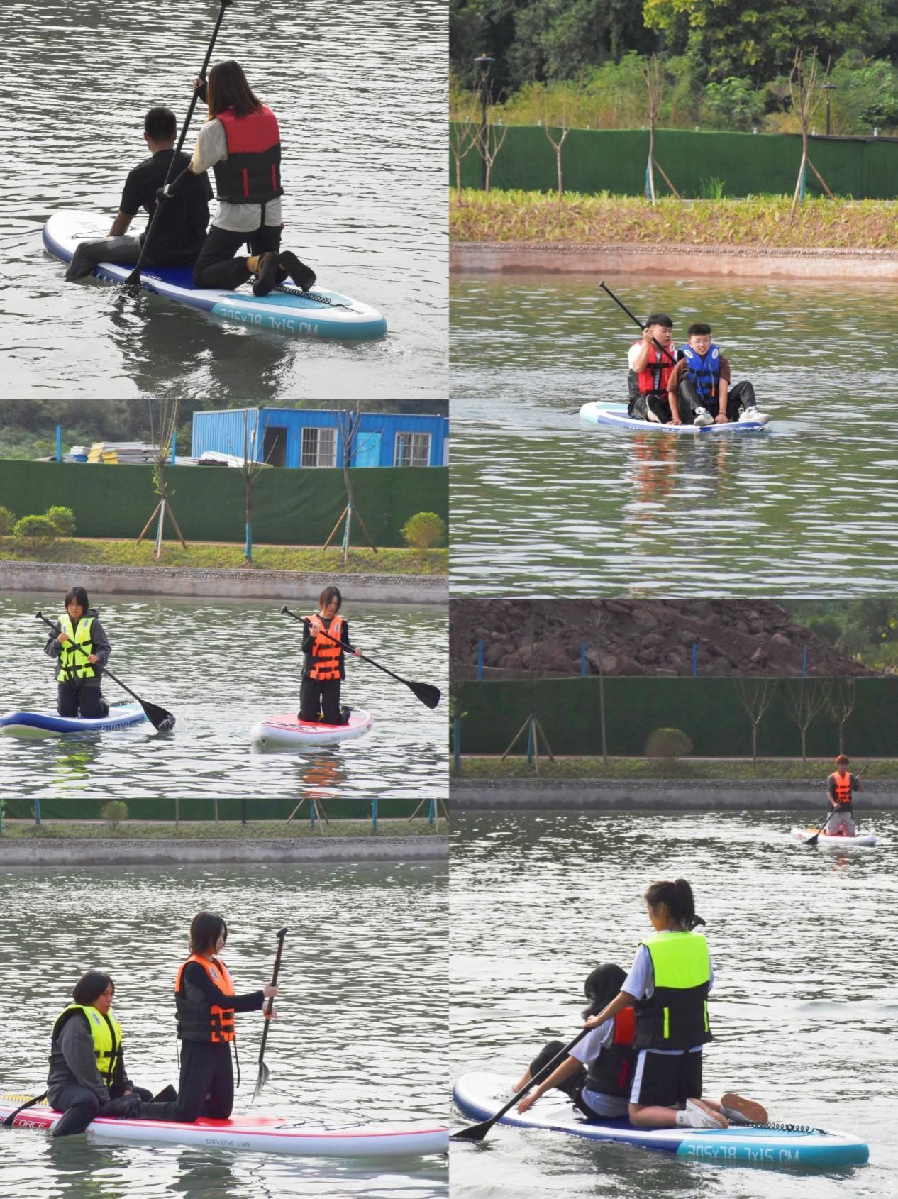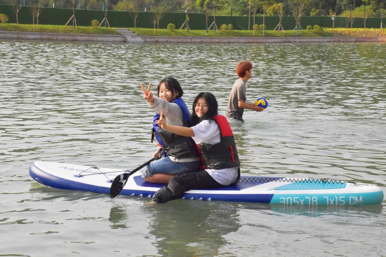 中午的湖水依旧带有一丝冷意,丝毫不影响同学们的热情。浆板运动是平衡、力量和耐力的结合,在挑战身体极限的同时,又能切身体会与大自然的亲近。站在浆板上感受着秋风的吹拂,汗水与湖水的交融,溅起的水花打湿了每个人的笑脸。