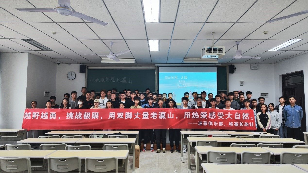 青春的赛场,你我决出精彩。人生的路途,你我并肩前行。汗水挥洒后的痛快,是付出努力后的满足感。为展现更好的竞技精神,保证老瀛山越野赛参赛队员们更充分的准备,更好的适应大赛体能和技能的双重考验,迷彩俱乐部与移綦长跑社在2023年10月25日中午12:30在仁者楼举行“山地越野宣讲会”。本次会议由中国顶级越野选手、校铁人三项队教练覃桂都进行讲解,会议近100人参加。
