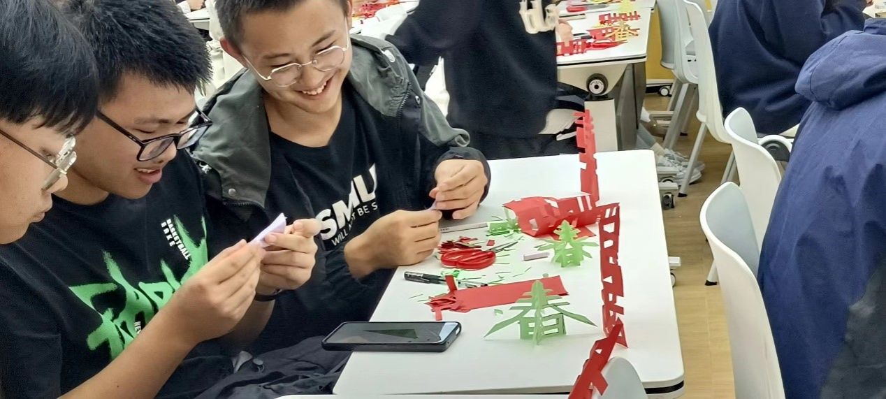 同学们在将纸张剪成不同形状和图案的过程中,需要不断地调整和控制图案的大小和比例关系,在这个过程中可以有效促进他们的视觉认知和空间想象能力。有同学剪出来的作品十分精美,比例协调,有的作品稍微有些不尽人意,还有的同学没有注意细节,导致剪出来的图案跟我们所讲的完全相反,整场活动笑声一片。