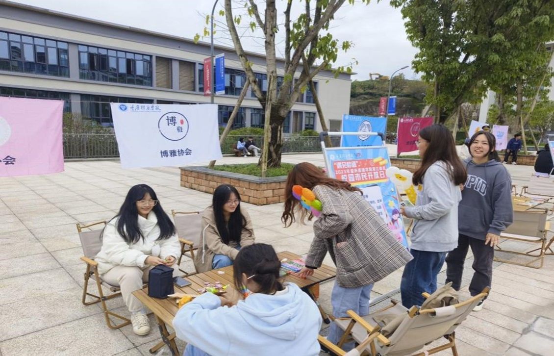 恰逢市民开放日,为来我校参观的市民展示移通社团的风采,欢迎校外市民的到来。博雅协会于10月28日下午2点30分在图书馆广场举办了“歌里有哲理”活动。作为2023年“古剑山·国际音乐节”的外围活动和市民开放日互动活动,通过音乐与哲学相结合来展示音乐节主题的同时也体现协会特点,展示社团风采。