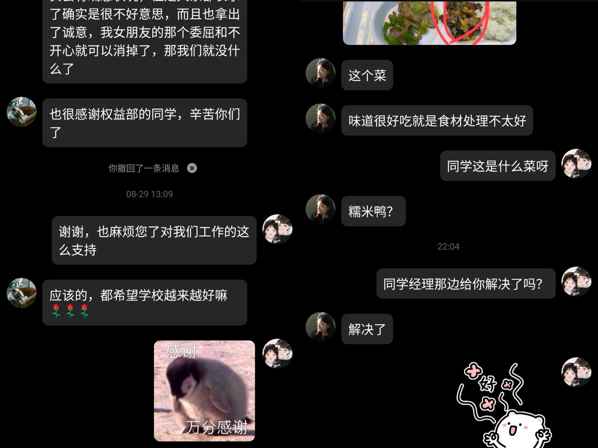 同时,校学生会权益女生部管理权益问题反馈群,并积极宣传反馈渠道,让同学们能通过正确渠道反映大家所遇到的问题,部门成员会按时收集整理,及时向上反馈,全力维护同学们的权益。