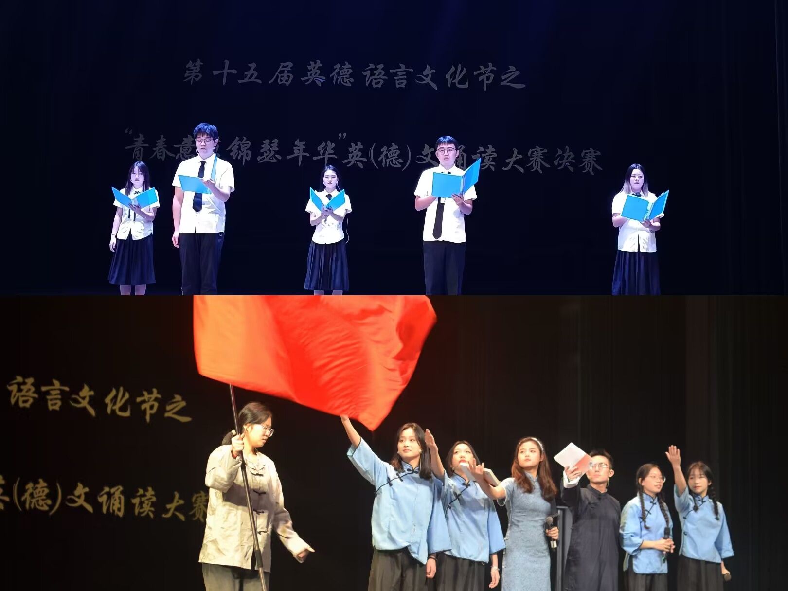 轻啼声落,初霖浸地,群英聚此序华声,竞诵声传盼明年,“十春织锦梦,五秋舒华卷”第十五届英德语言文化节开幕式暨“青春意蕴,锦瑟年华”英(徳)文诵读大赛圆满结束。