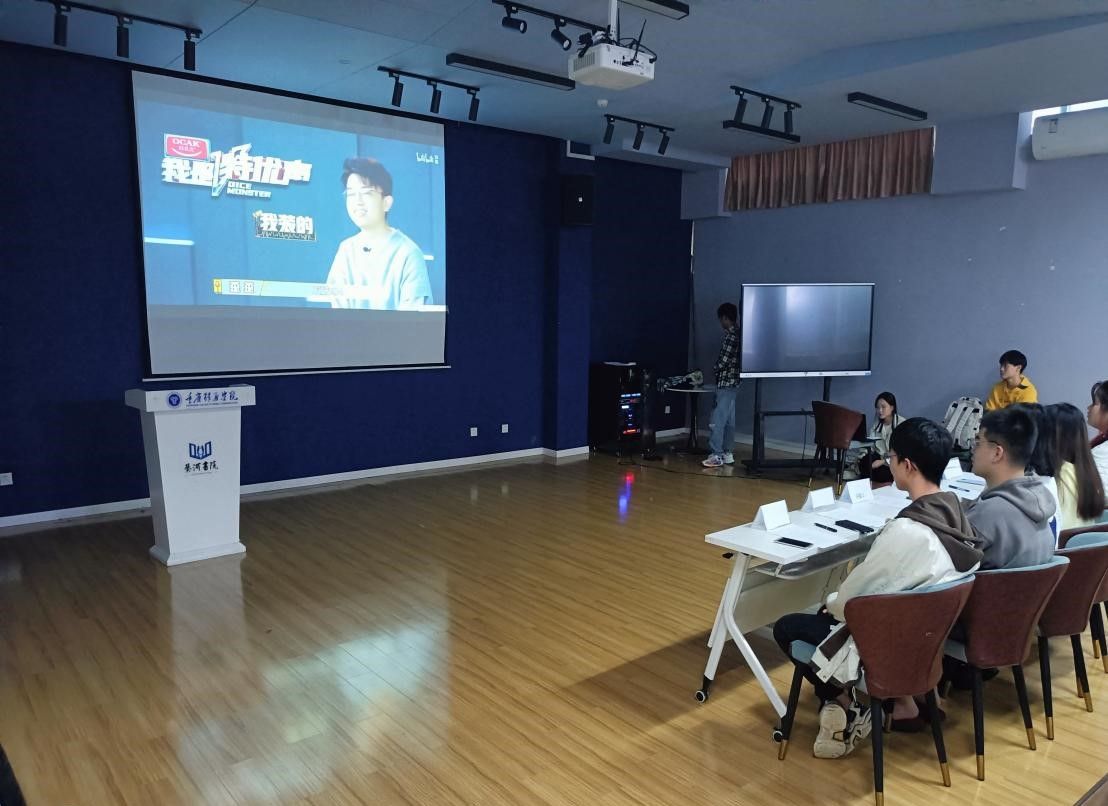 为庆贺祖国七十四岁华诞,全面学习领会习近平新时代中国特色社会主义思想,为讴歌中华民族实现伟大复兴的百年奋斗历程,传承无数革命先烈用鲜血染成的革命精神,赓续顽强意志所浇筑之红色血脉,虹雨配音社于10月19日——22日在线上开展了经典剧目配音大赛初赛,并于10月27日,在綦河书院阶梯教室举办了经典剧目配音大赛决赛,同时邀请了简云丹老师和覃志蓉老师前来参与。