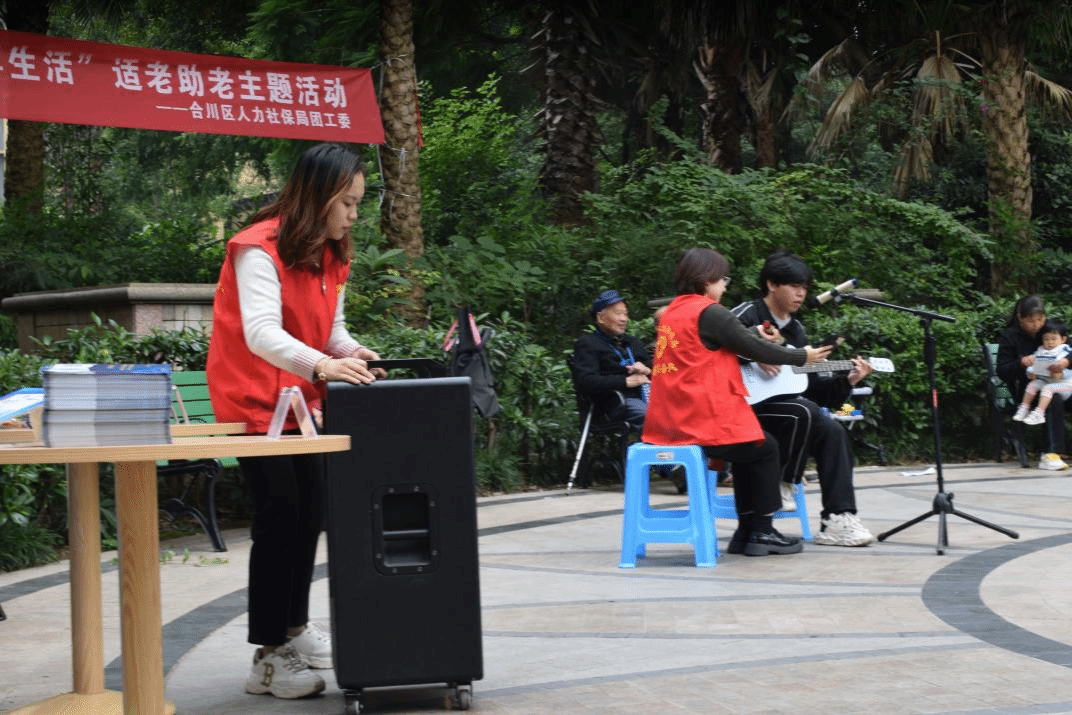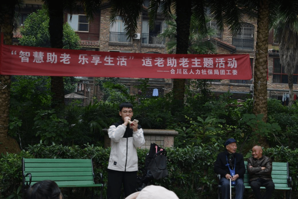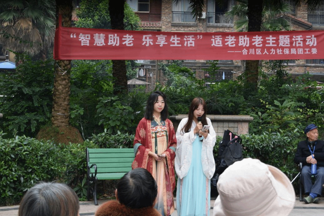 为传承中华民族孝老爱亲的传统美德,弘扬孝亲敬老的传统美德,助力打造“老有所依、老有所乐、老有所为”的良好社区风貌,推动校地共建工作的走深走实。我校学生社团管理中心积极联动西洋乐器协会、流行音乐社、华韵汉服协会、非物质文化遗产研究社等四个社团2023年11月8日10:00走进社区、走进人民群众,参加由合川区人社局团工委举办的“智慧助老、乐享生活”适老助老主题活动展演,充分发扬社团人的青春能量,大力营造养老孝老敬老的社会美好氛围。