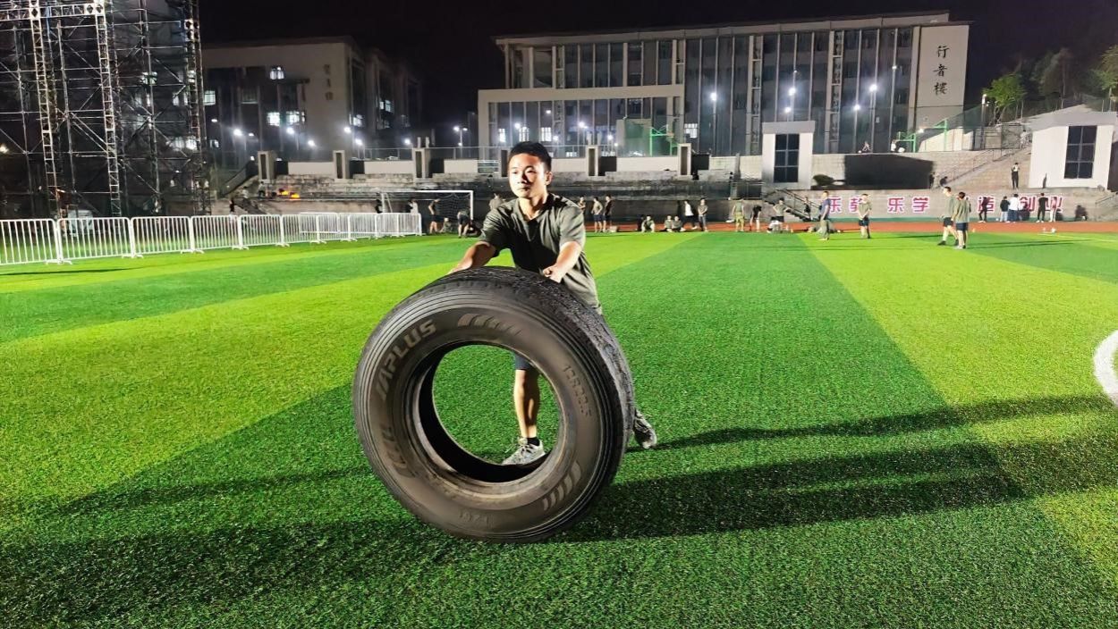 作为半军事化社团的迷彩俱乐部,体能训练是必不可少的,迷彩俱乐部每周三七点到九点是社员们挥洒汗水,强身健体的社团固定晚训时间。第一次晚训是社员们为磨练意志而迈入的第一步。在训练中挥洒汗水,和队友共同完成小组挑战——翻轮胎、接力跑,在绿茵场上肆意挥洒青春,锻炼意志成就自我。