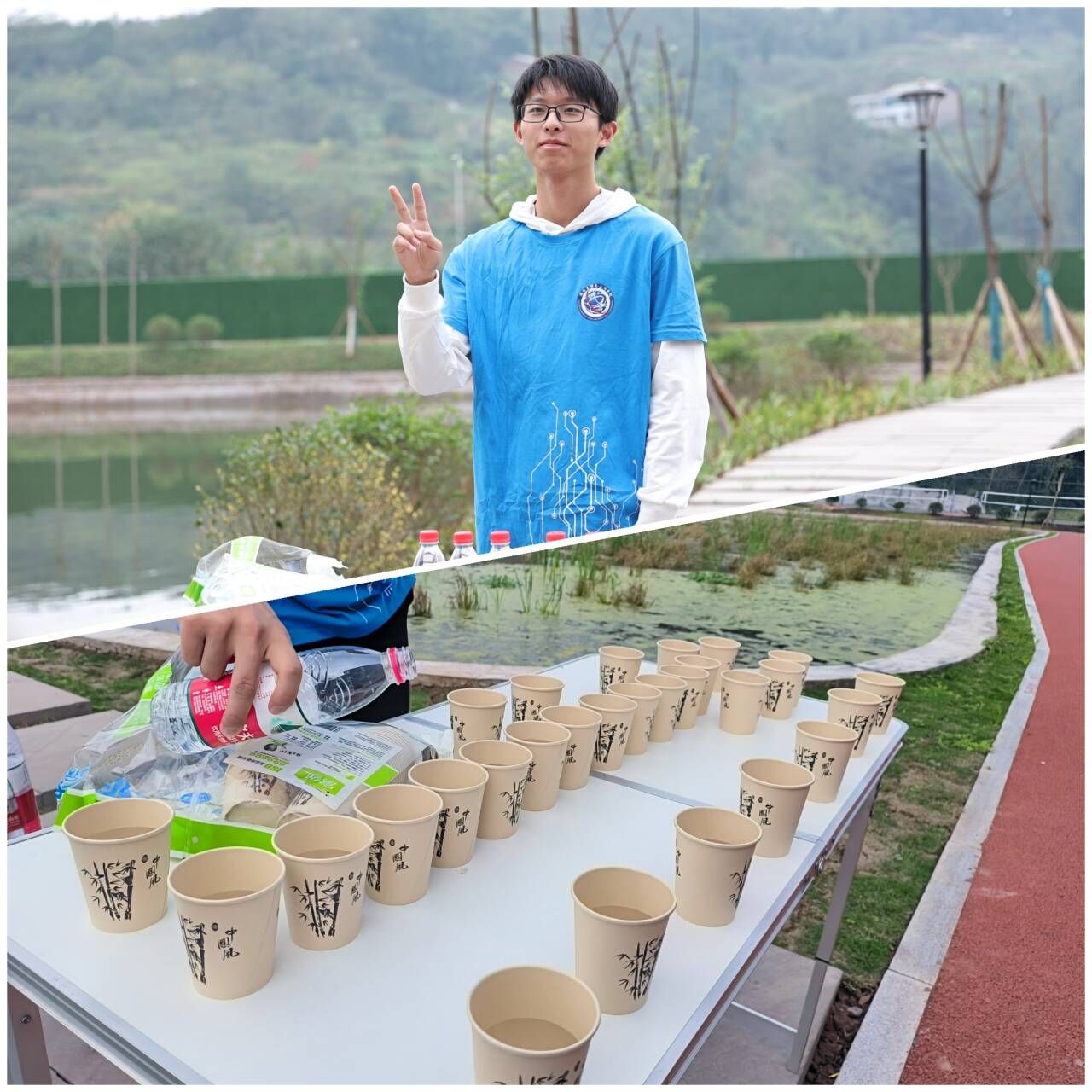 观赛的同学与工作人员们也在赛道旁为选手们呐喊助威,场面十分热闹。值得一提的是,因考虑到本次竞赛距离较长,工作人员早早地便为参赛人员们准备好了矿泉水和葡萄糖,为选手们补给提供了有力的保障。