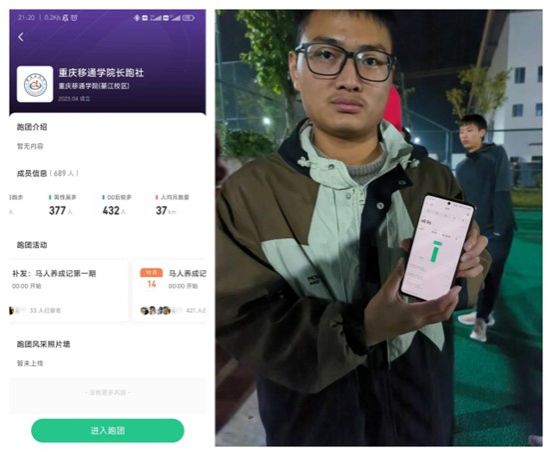 “马人”养成记是重庆移通学院移綦长跑社在经过开学一月有余的观察后决定开展的一项活动。随着綦江校区的逐步扩大以及师生人数的增加,操场上跑步的人数愈加增多,为吸引更多的同学参与到健康运动中来,以及为达到让同学们养成进行长期性体育锻炼的目的,“马人”养成记应运而生。活动中,跑团人数已达689人,人均月跑量达到37公里。