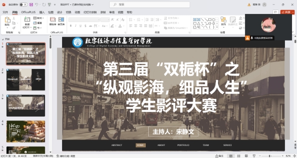 本次大赛以“纵观影海,细品人生”为主题,旨在通过观影、评影的方式,提高学生的艺术鉴赏能力和人文素养。活动吸引了我院众多学生的积极参与,老生与新生共分享、线上与线下相结合。经过紧张的初筛和投票环节,共有九位选手脱颖而出,进入分享环节。活动现场,选手们纷纷拿出看家本领,就自己喜爱的电影进行深入剖析和解读。他们用富有感染力的语言和生动的事例,让在场的评委和观众感受到了电影所传递的人文关怀和艺术魅力。