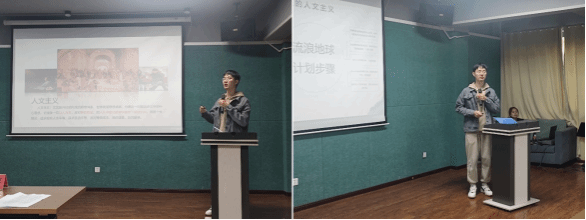 硬科幻电影的人文主义浪漫——《流浪地球2》,由唐洪亮同学为大家分享。唐同学纵览影片,鼓励大家从不同的角度去看待流浪地球这部电影,不去谈论电影本身的科学性、文学性,不去深究他的特效是否华美,而是在太阳氦闪危机这个大背景下发现人类的团结一心;在剧情的发展中体会人物从未放弃希望;从情感的表达中体现责任二字在危机下的深刻含义。以小见大,电影中的个体反映出一个独具人文主义浪漫的人类群体。唐同学指出电影想让我们看到的是团结一心干大事的人类整体,这也进一步加深了大家对习近平总书记所提出的“人类命运共同体”的深刻理解,唐同学对电影内涵的深刻理解引得在场观众掌声阵阵,现场氛围也变得热烈起来。