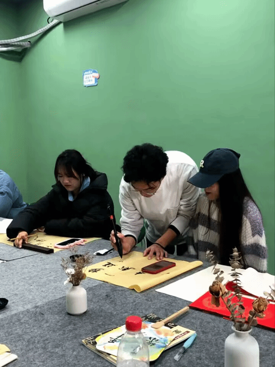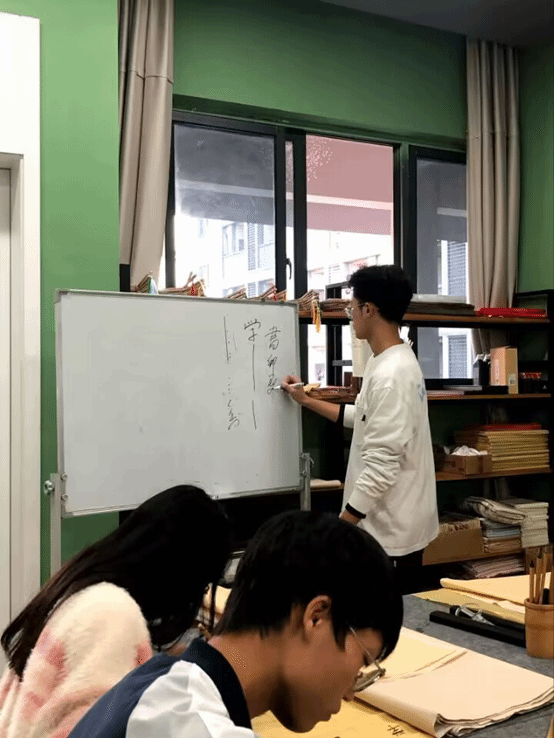 讲解结束,同学们以小组形式进行创作和临摹,社长樊源杰和专业部的同学一起对需要指导的同学提供帮助。本次活动不仅提高了同学们对于书法大家及其作品的欣赏水平,感受到书法的魅力,也提高了同学们对艺术的审美能力和在团队创作中的团队合作意识。