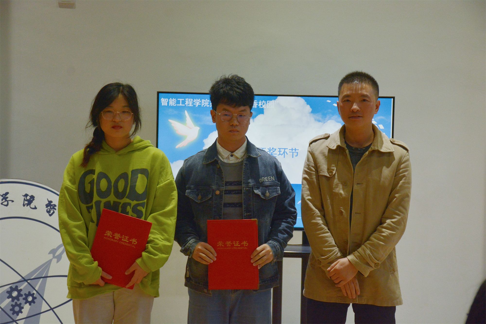 最终黄恩祈同学荣获得本次比赛的一等奖,任静、邹腾荣获二等奖,罗锦红、张洛源、王咏洁荣获三等奖,罗强等其他同学获得优秀奖,评委老师为获奖选手颁发证书并合影留念。