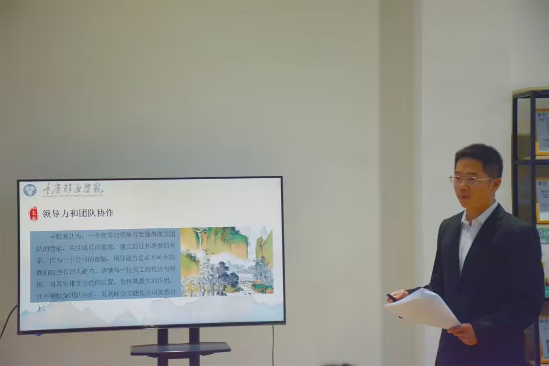 主持人详细介绍了评选的实施方案和评分细则,请各位评委根据选手的演讲内容、语言表达、精神面貌以及读书心得等多个方面进行打分。来自大一至大三的13名决赛选手通过PPT展示或视频的方式,分享了他们阅读的主要内容、阅读心得与收获。饶林同学带来了《娱乐至死》一书,阐述了“现今娱乐至上的时代下,我们该如何正确运用媒体,认识当下信息失真、快节奏、碎片化、富于表面等现象的出现”的这一观点。罗锦宏同学介绍《任正非传》一书的体会:这本书时刻在诠释着这华为传奇人物几十年的发家史——从家境平困中走出,再到军旅十四年的生活中的蜕变。初次经商的亏损并不会将他打到,更是在面对外国制裁中屹立不倒。在读这本语言朴实而直接的书时,让人陷入思考的往往是作者在实践的岁月中所凝结出的智慧。黄恩祈同学分享了《美国普罗米修斯:奥本海默的胜利与悲剧》一书:一个冒着毁灭世界的危险来拯救世界的人物传奇,最后却萧寂落幕。让人不禁思考,原子弹的出现到底是对还是错?圣火带来到底是罪还是罚?科技与伦理责任到底该如何平衡?其他同学介绍了《任正非传》、《星火燎原》、《人性的弱点》等书,通过展现书本丰富的内容展示和个人思考,为在场师生留下了深刻的印象。