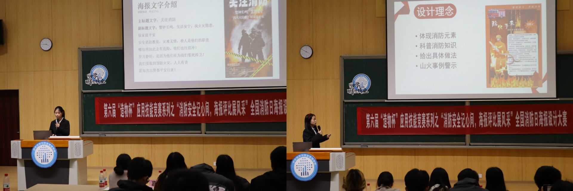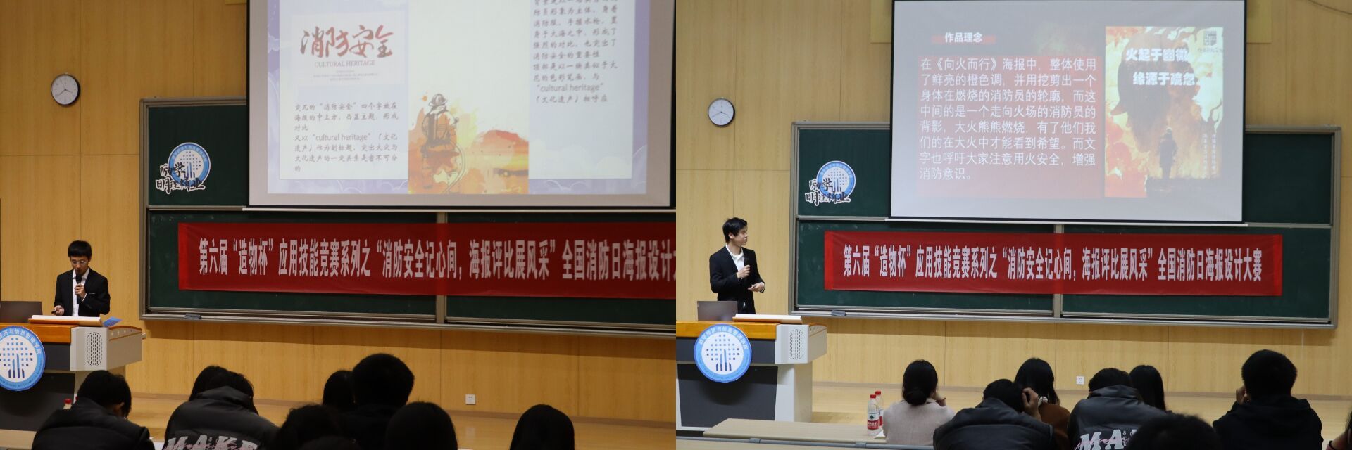 自征集稿件以来,共收到来自我院上百幅参赛作品。这些作品充分展现了参赛者对消防安全知识的独到见解和扎实的专业技能。经过公平、公正、公开的线上作品评选,最终有16份优秀作品脱颖而出进入决赛,参与线下答辩。参赛选手们通过巧妙的海报设计和精准的信息传达,让同学们更直观地理解火灾防范的重要性与必要性。参赛作品都主题鲜明、设计新颖、寓意深刻,具有很强的视觉冲击力和教育意义。