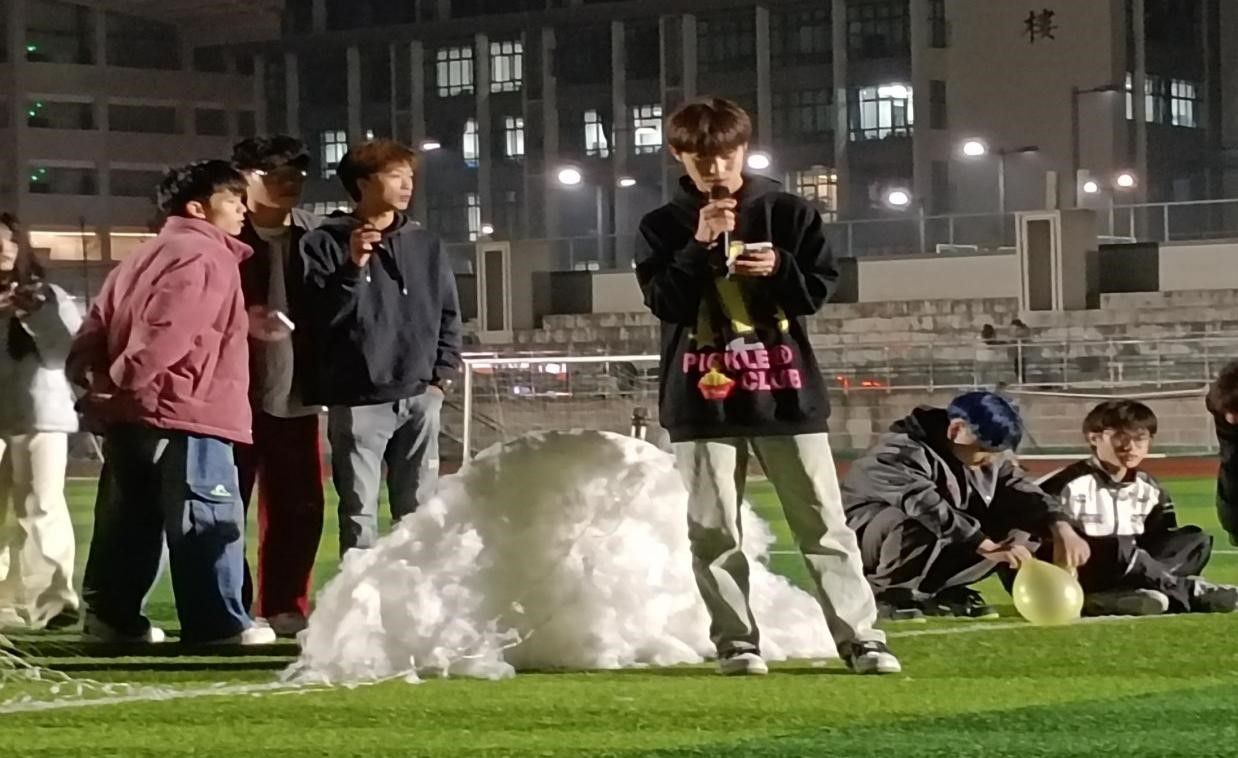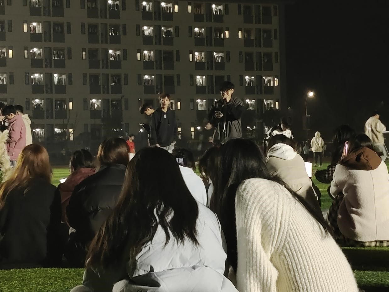 活动伊始,伴随着充满节奏感的音乐和现场热烈的艺术气氛,数位綦怪YTR说唱社Rapper们登台献艺。足球场上云朵和麦穗道具,代表着清澈与美好,令人仿佛置身于广阔的田园间,笼罩在一片自由的气氛之下。现场气氛越来越热烈,观众情绪越来越高涨,Rapper们以独特的韵律和感染力强的歌词,为现场的同学们展示了说唱艺术的魅力,配上独特的风格和个性,将说唱艺术演绎得淋漓尽致,现场观众们全神贯注地欣赏着每一个表演,并对Rapper们的精湛表演报以热烈的掌声。随着时间的流逝,此次活动渐渐进入尾声,皎洁的月光洒在每一个年轻的脸庞,成为这场表演最美的谢幕。