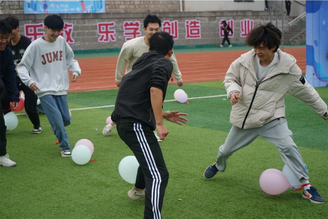 第二个游戏是“气球踩踩踩”,此游戏将活动现场的气氛推向高潮,学生社团负责人以班级为小组进行游戏比拼,在规定时间内班级踩爆的气球数量最多者获胜。在活动现场班与班之间竞争激烈,在操场上竞相追逐,通过合作与竞技的方式,不仅让学生社团负责人在游戏中共同体验踩气球的乐趣,同时也增强学生社团负责人之间团队合作意识,竞争精神,加强其凝聚力。