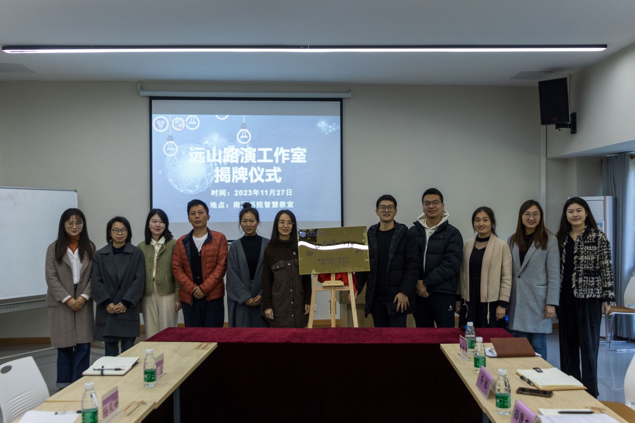 最后,李文娟院长和杨德龙老师为远山路演工作室的成立揭牌,全体成员进行合影留念。