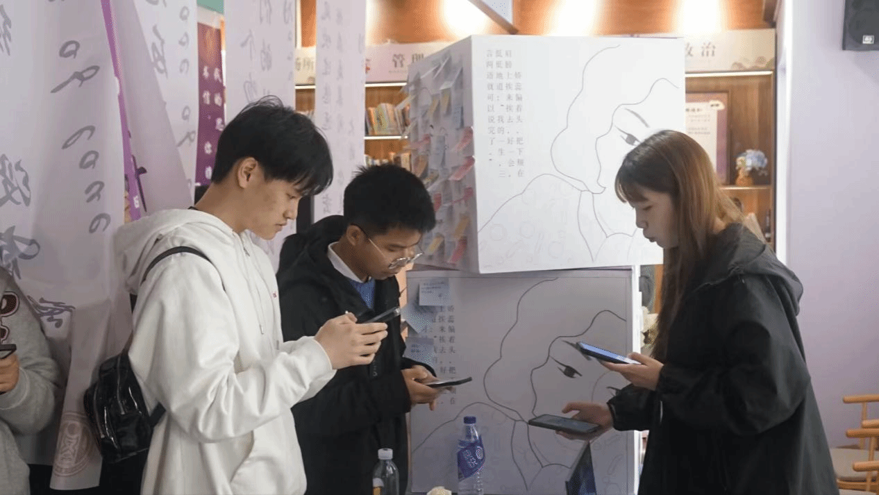 在现场,同学们非常欣赏展示架上征集活动中脱颖而出的优秀作品,频频称赞,期许自己未来也可以用语言描绘最炽热的情感,写下最真挚的情书。