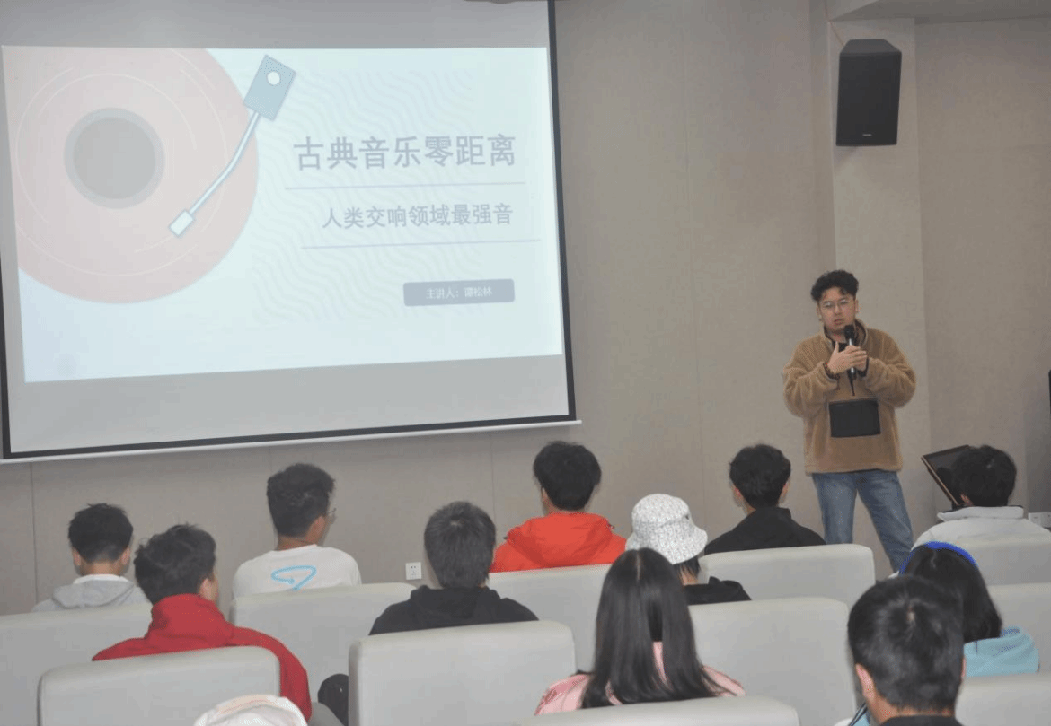 同学们在分享中可以从古典音乐中去感受它所表达的无限的情感。最后谭松林老师讲述了贝多芬即使在学习和生活中遭受如此压力却仍未放弃这一乐观精神,点明活动的主题,让同学们感受古典音乐的魅力,也学习他这种坚持、乐观的心态,也为勇于表达自己的想法的同学进行嘉奖。